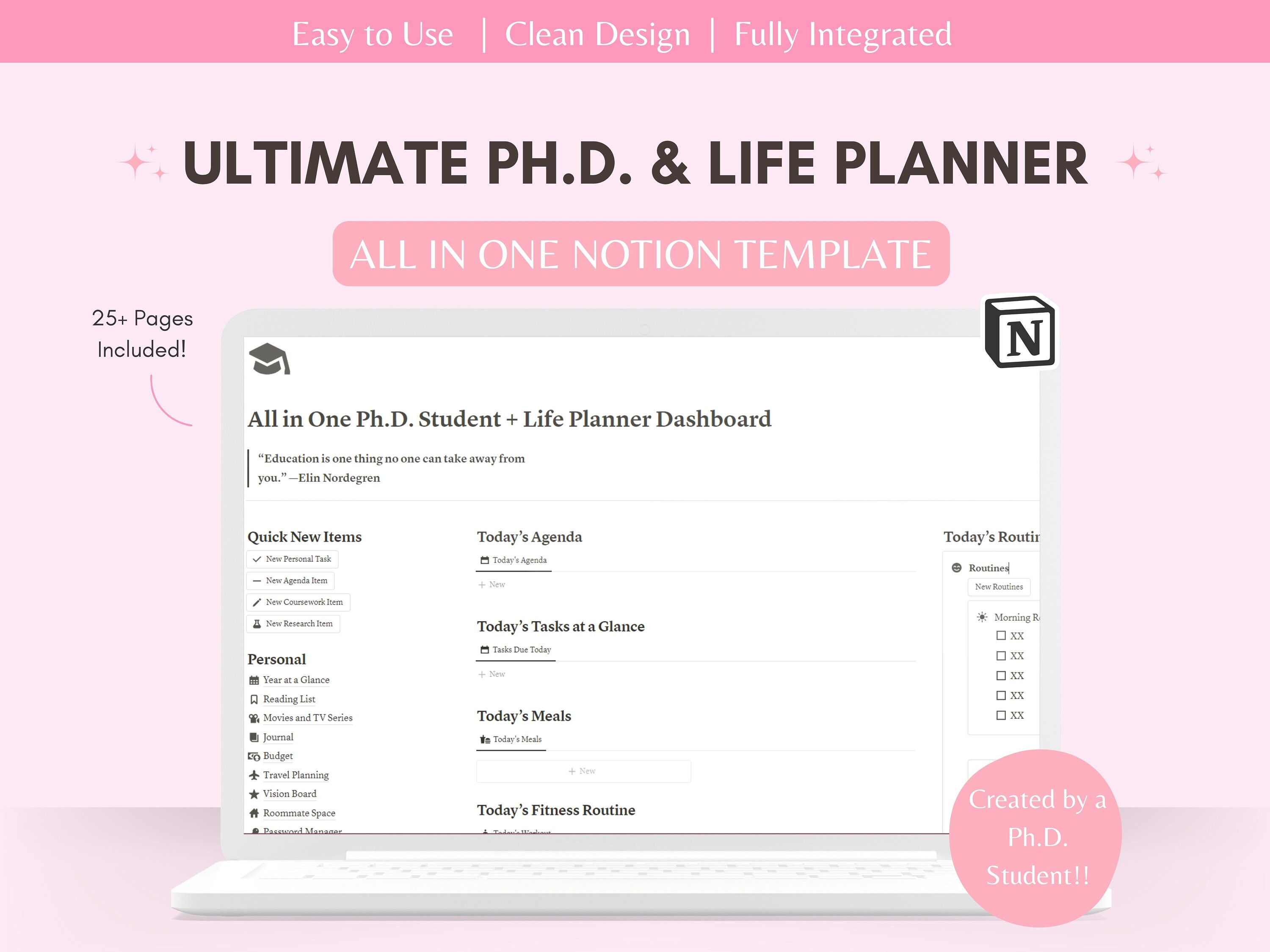 PhD Student Notion Template: Academic & Life Planner (Digital D...