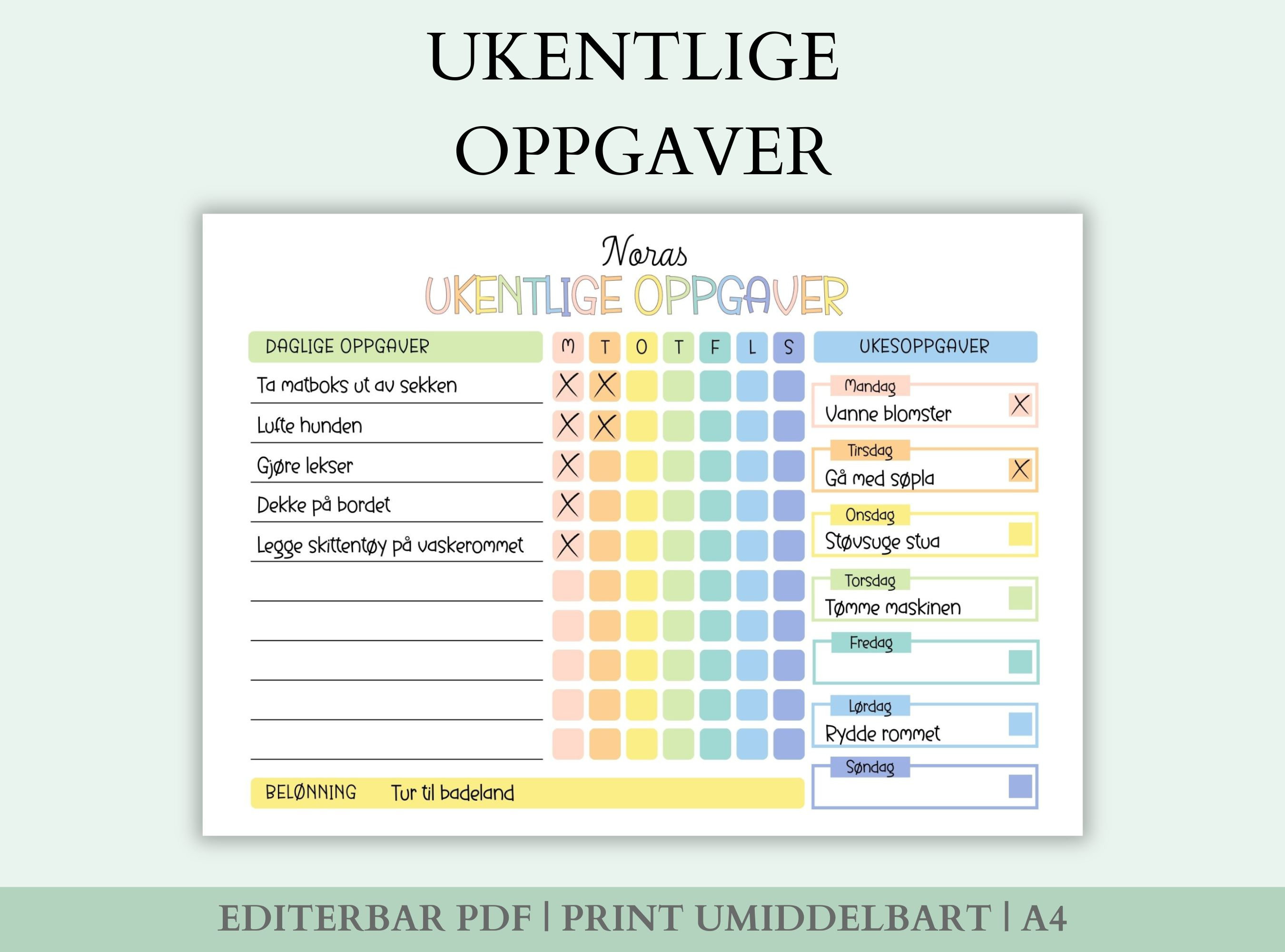 Skjema for ukepenger for barn, motivasjon for husarbeid, ukel&oslas...