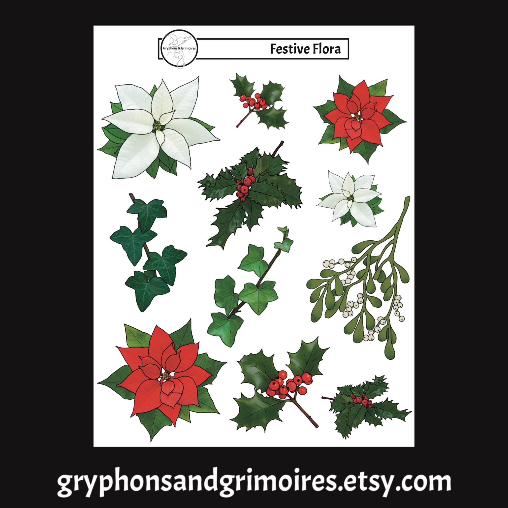 Festive Flora themed decorative stickers. Each sheet includes 11 kiss-cut stickers, ready to use in ...