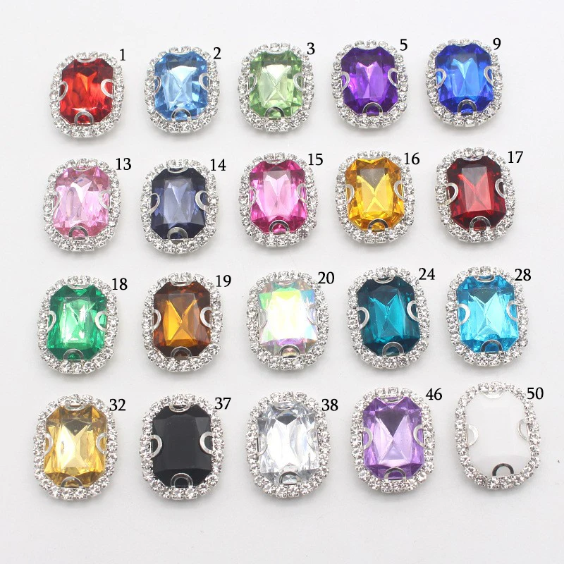 10Pcs 18*23MM rectangular metal rhinestones sewing accessories butt...