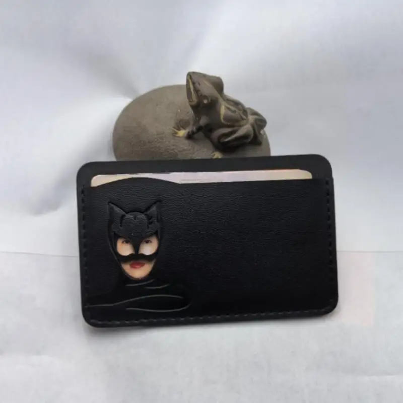 Leather Card Holder Funny Black Cat Mask ID Card Holder Storage Business Card Holder Gifts