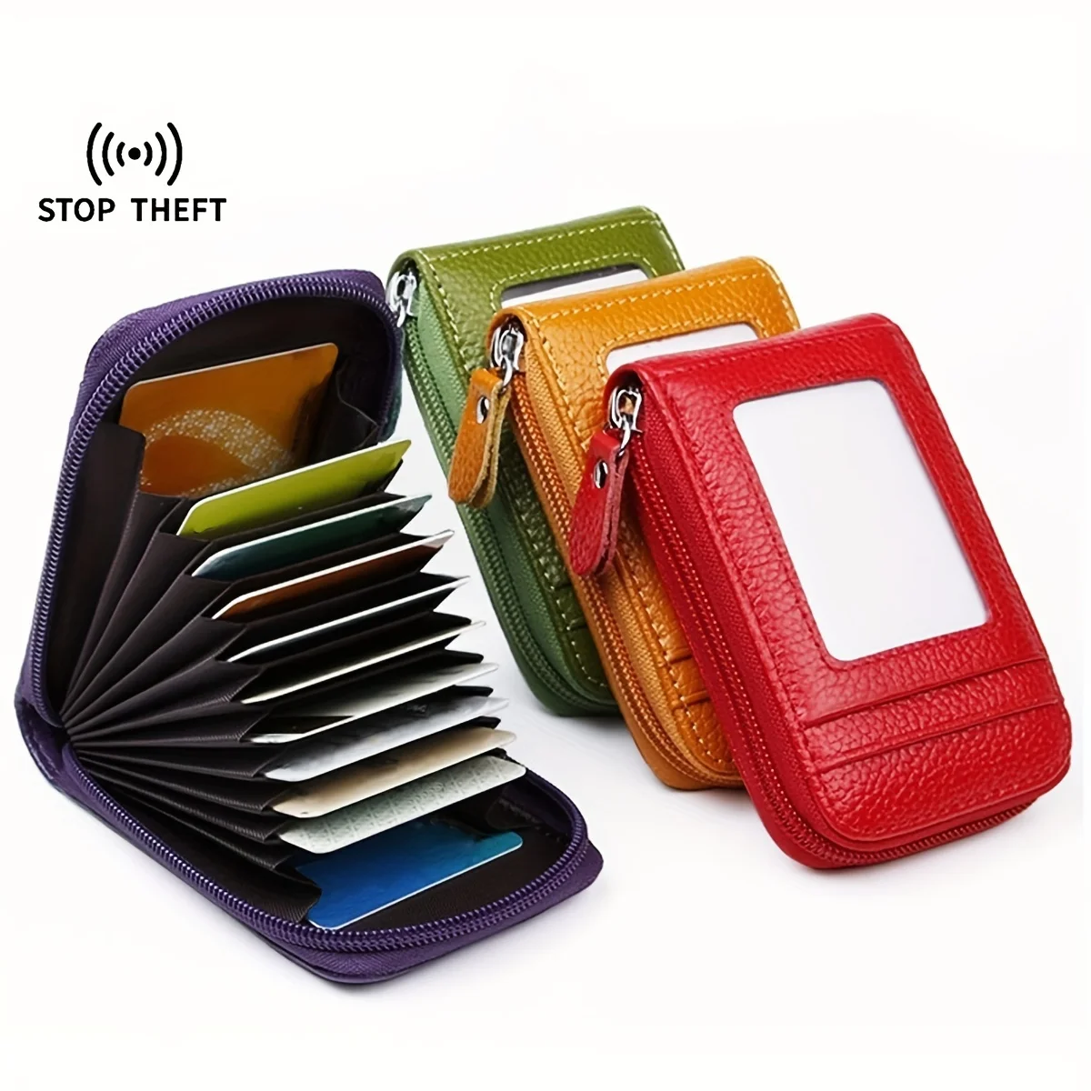 Multi Card Case Card holder with ID Window Zipper Card Cases Holder...