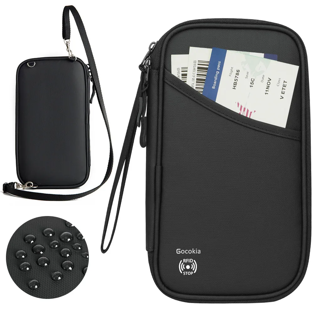 Multi Pocket Passport Bag Travel Wallet with Shoulder Strap-Family Passport Holder of 5, RFID Blocki...