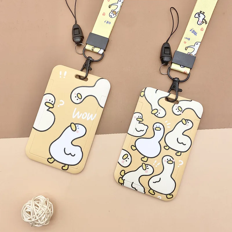 Cartoon Little Yellow Duck Card Cover Bus Card Access Card Badge Holder Long Rope Neck Strap Lanyard...