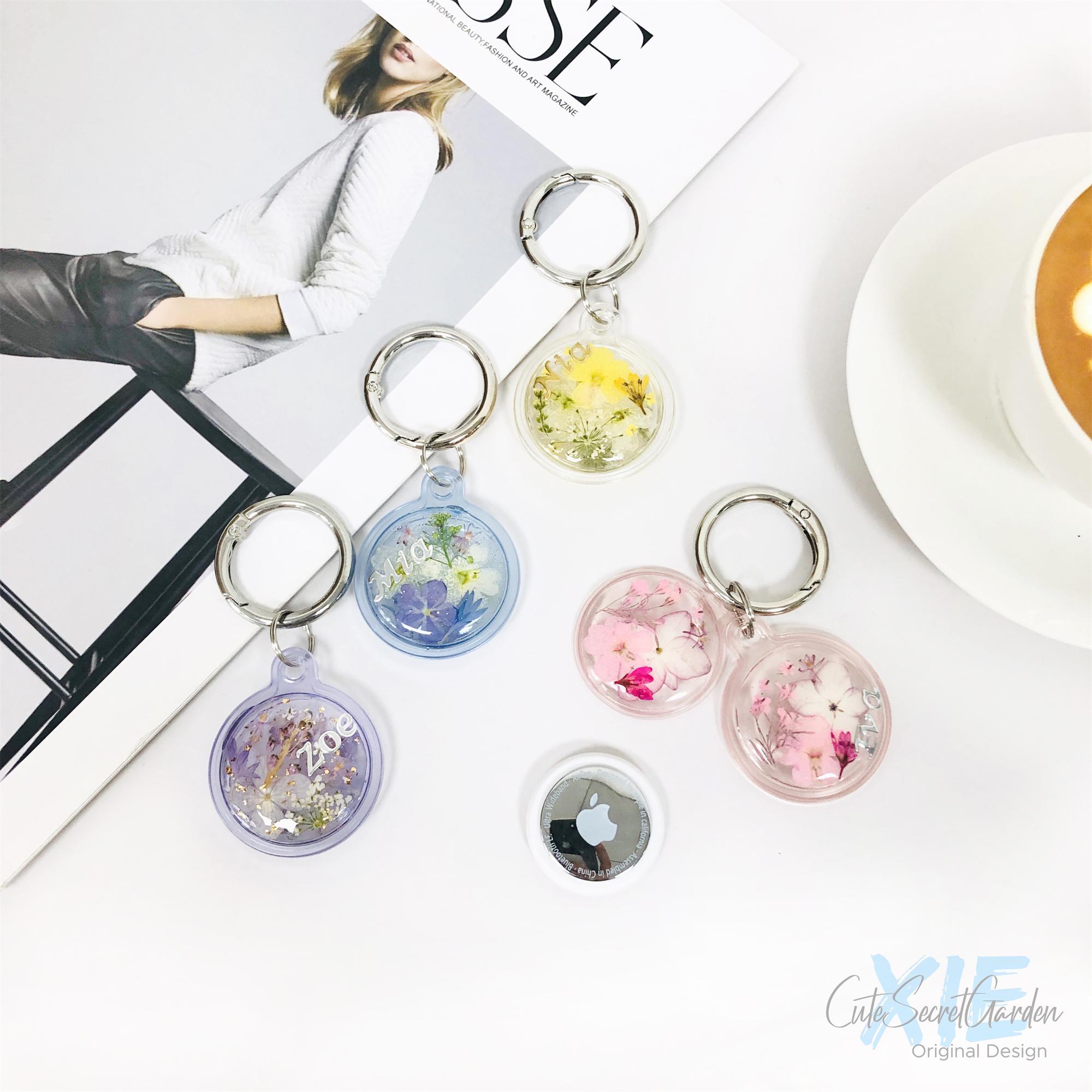 Real flower clear AirTag case, Custom name AirTag Holder, AirTag wa...