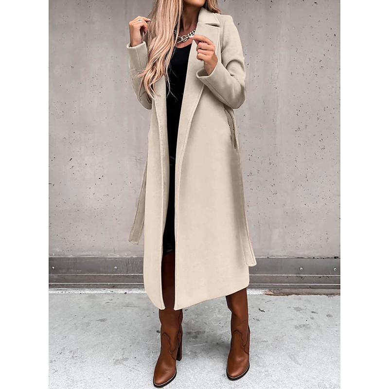 Women's Winter Coat Long Overcoat with Belt Fall Lapel Pea Coat wit...