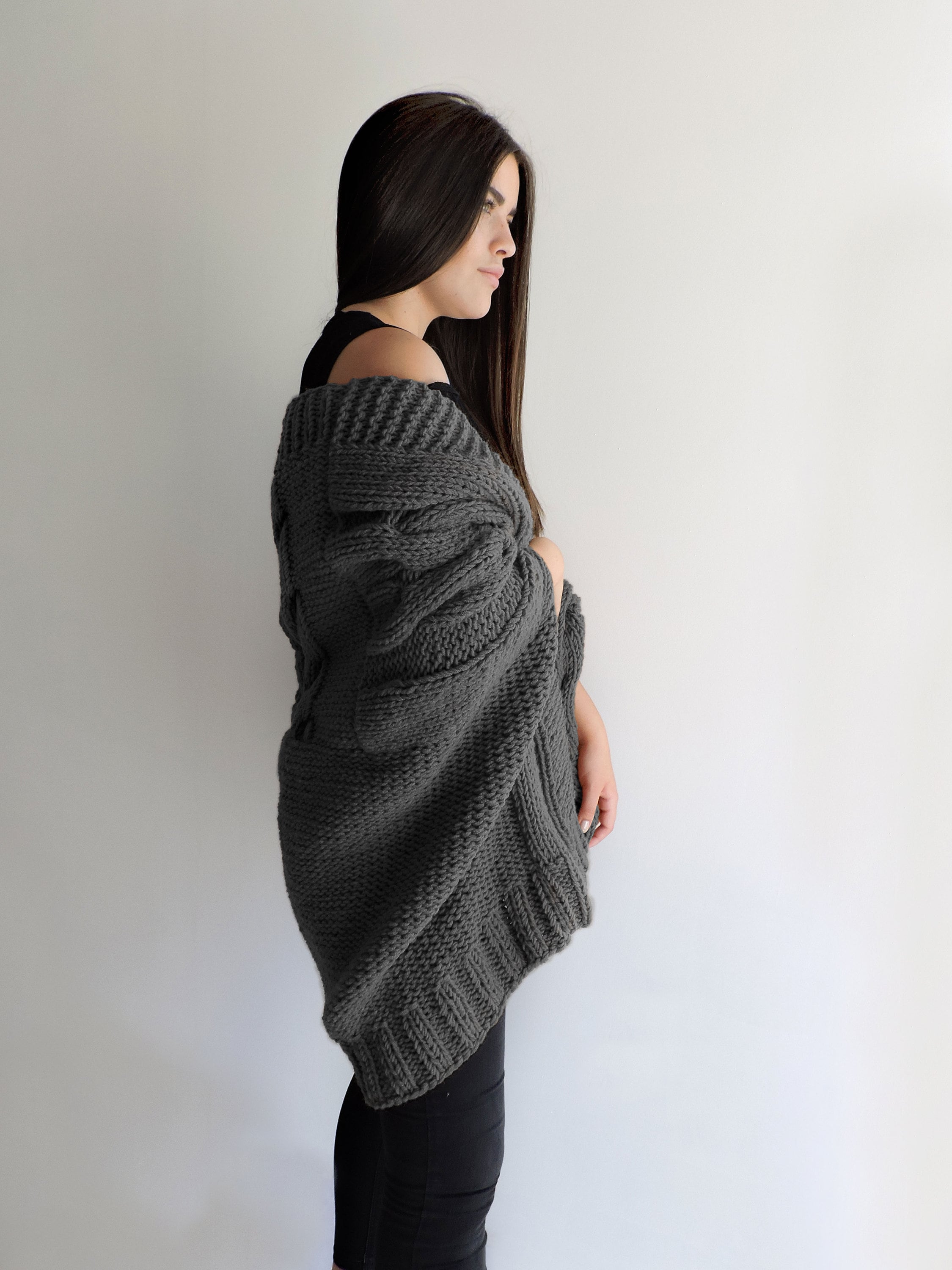 Woman's chunky knit cardigan merino wool, Long wool cardigan, Trenc...