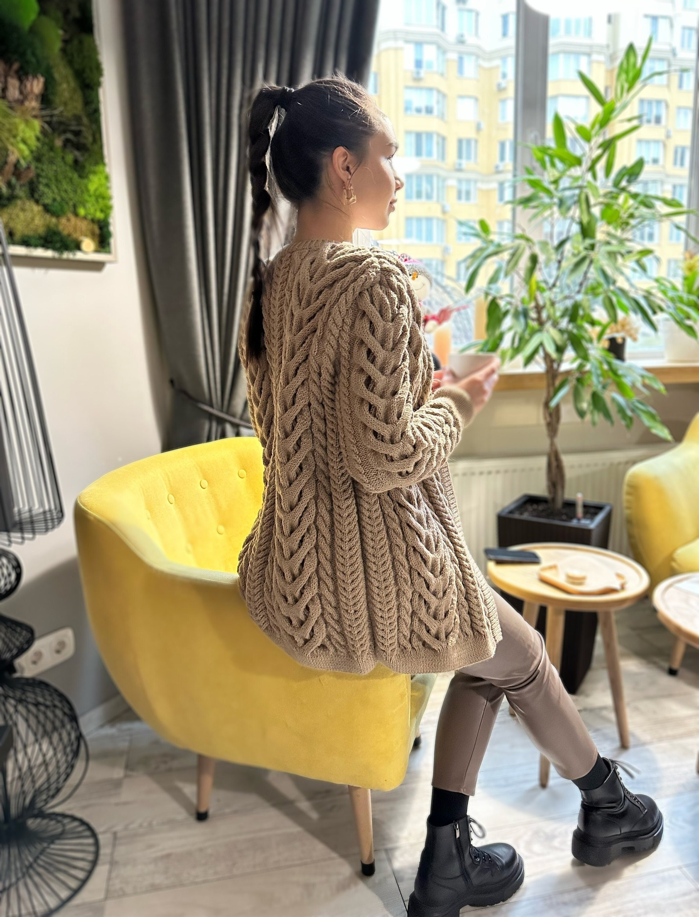 Chunky Yellow Knit Cardigan, Oversize Wool Knit Jacket, Bulky Knit ...
