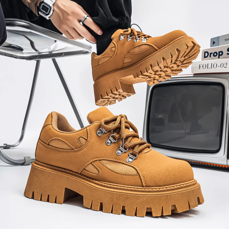 Men's Casual Shoes Thick Bottom Heightening Leisure Leather Boots Vintage Workwear Low Cut Retro Sty...