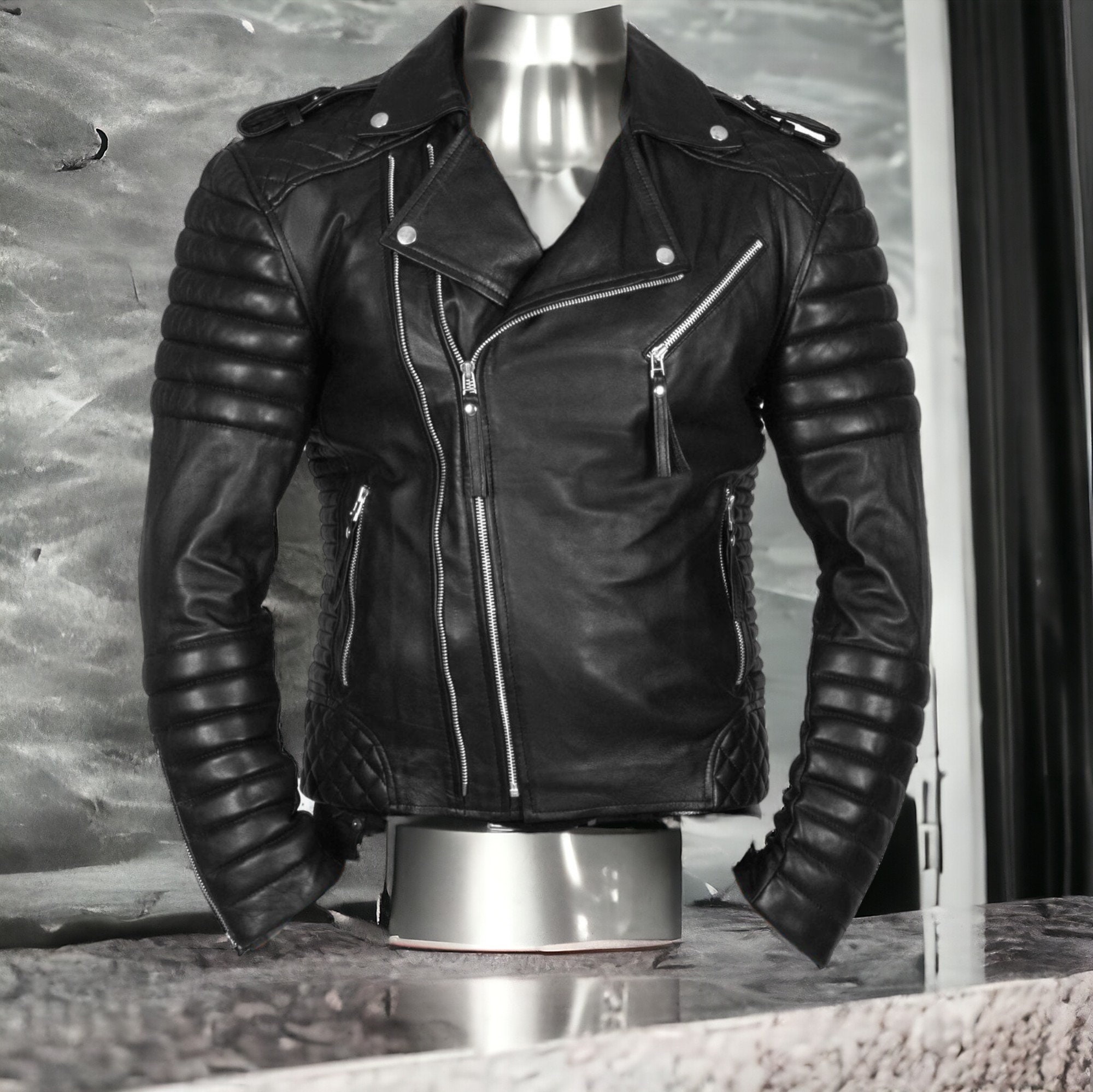 Men's Handmade Quilted Black Motorcycle Leather Jacket | Men Motorc...