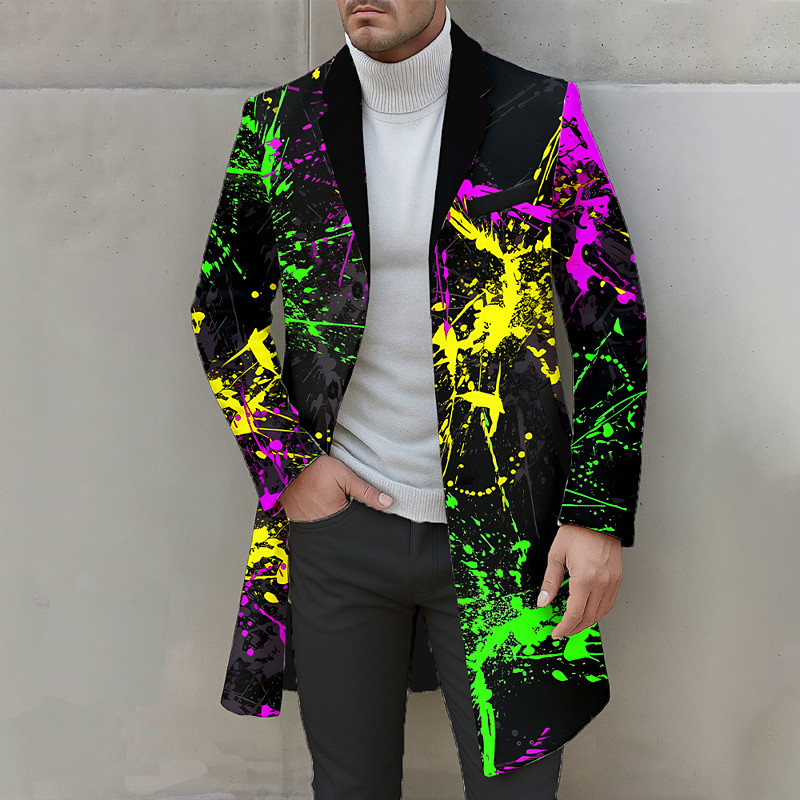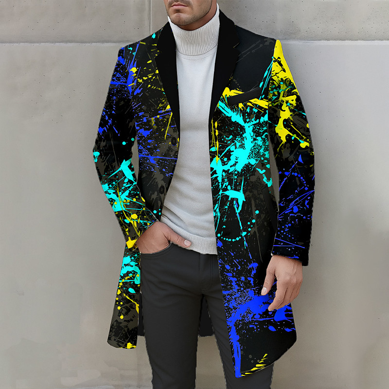 Men's Color Block Overcoat Coat Casual Daily 3D Print Buttons Front...