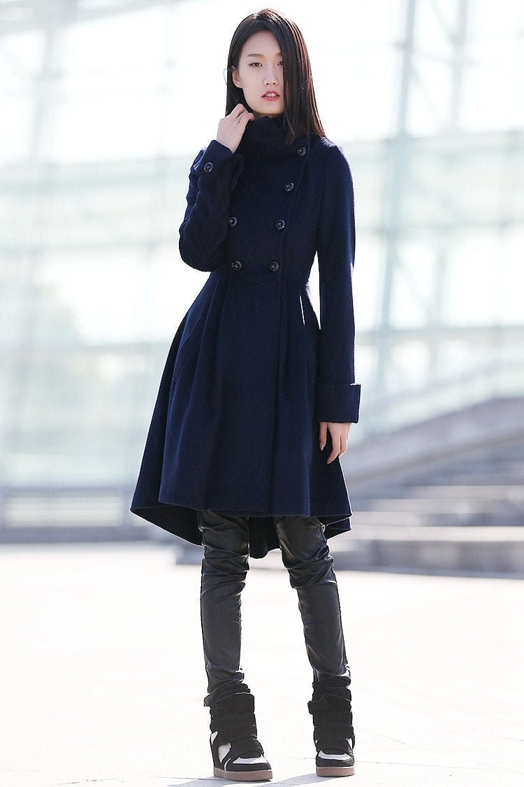Blue coat, winter coat, wool coat, womens coat, midi wool coat, nav...