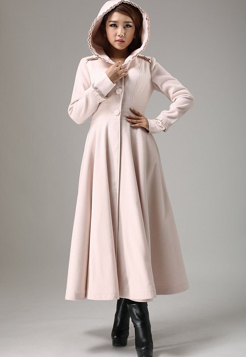 Pink wool coat, women coat, maxi coat, winter coat, coat dress, hoo...
