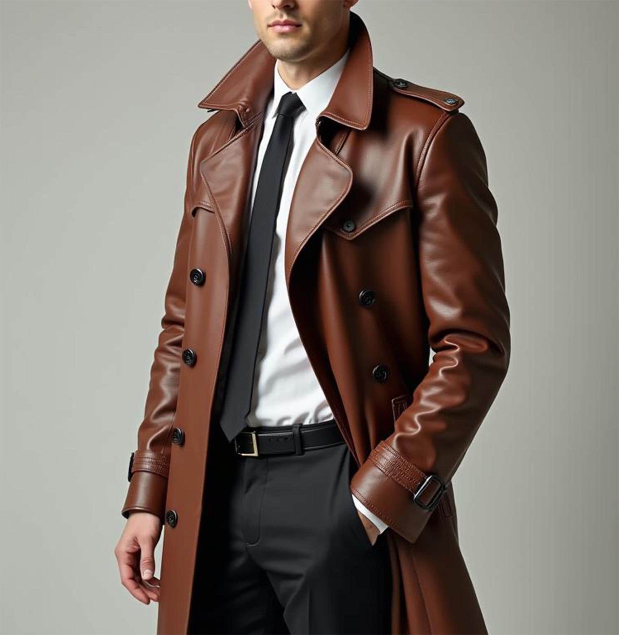 Hand Crafted 100% Genuine Leather Trench Coat for Men Crafted from top-quality real leather, our men...