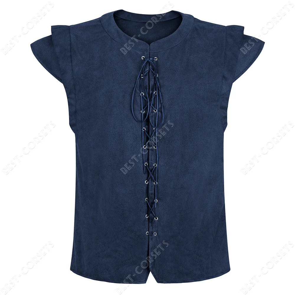 Medieval Vest Man Plus Size Pirate Vest Costume Adults Men Blue Waistcoat Lace Up Vest Pirate Hallow...