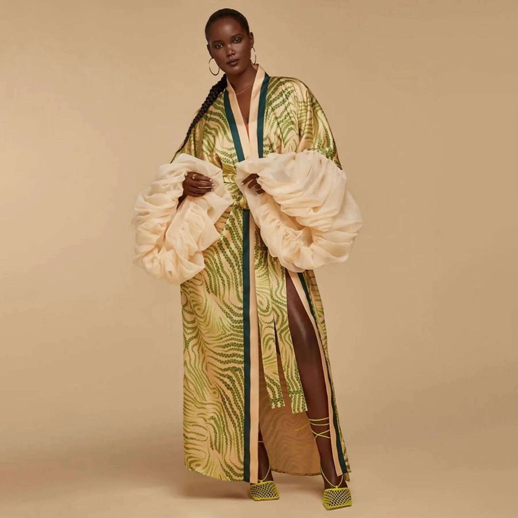 Spring Autumn New Women's Coats Fashion Irregular Lantern Sleeve Loose Cardigans Elegant Pattern Pri...