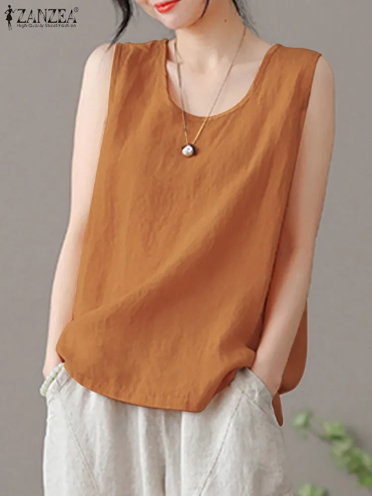 2024 ZANZEA Summer Tanks Tops Women Fashion Sleeveless O Neck Blous...