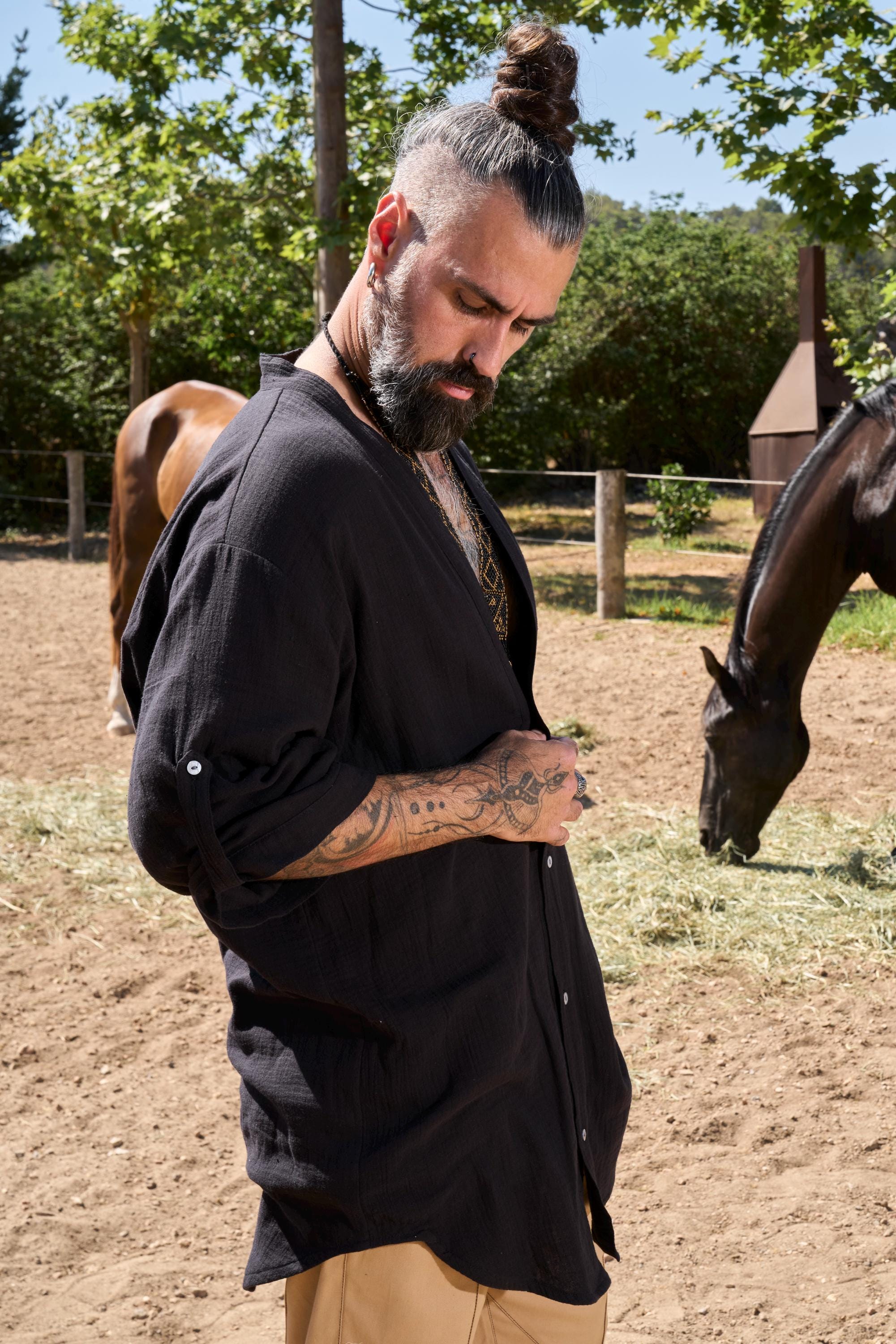 Mens Long Shirt / Mens Shirt/ Man Black Shirt/ Button Down Mens Shi...