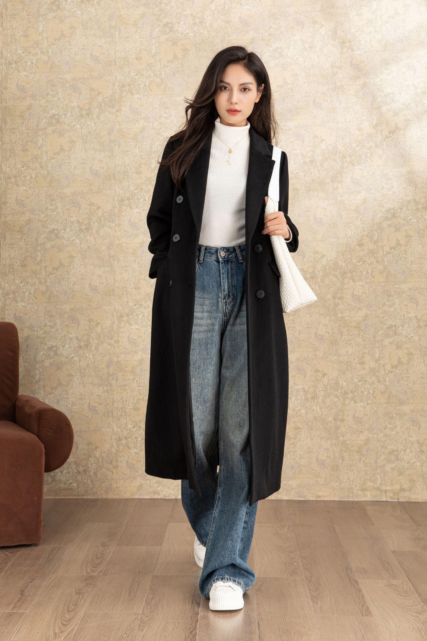 Long Wool coat for women,Long cashmere coat,women wool coat,black w...