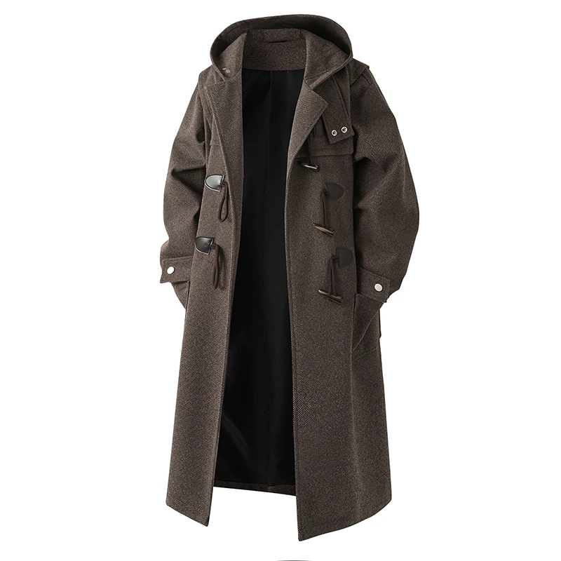 Autumn Men Thick Hooded Trench Coat Men Korean Wool Blends Overcoat Men Casual Horn Button Woollen C...