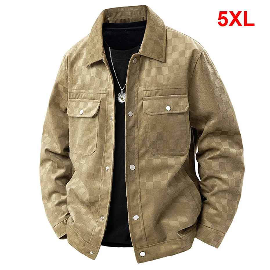 Suede Jacket Men Fashion Casual Vintage Plaid Jacket Coat Male Cargo Jacket Coat Black