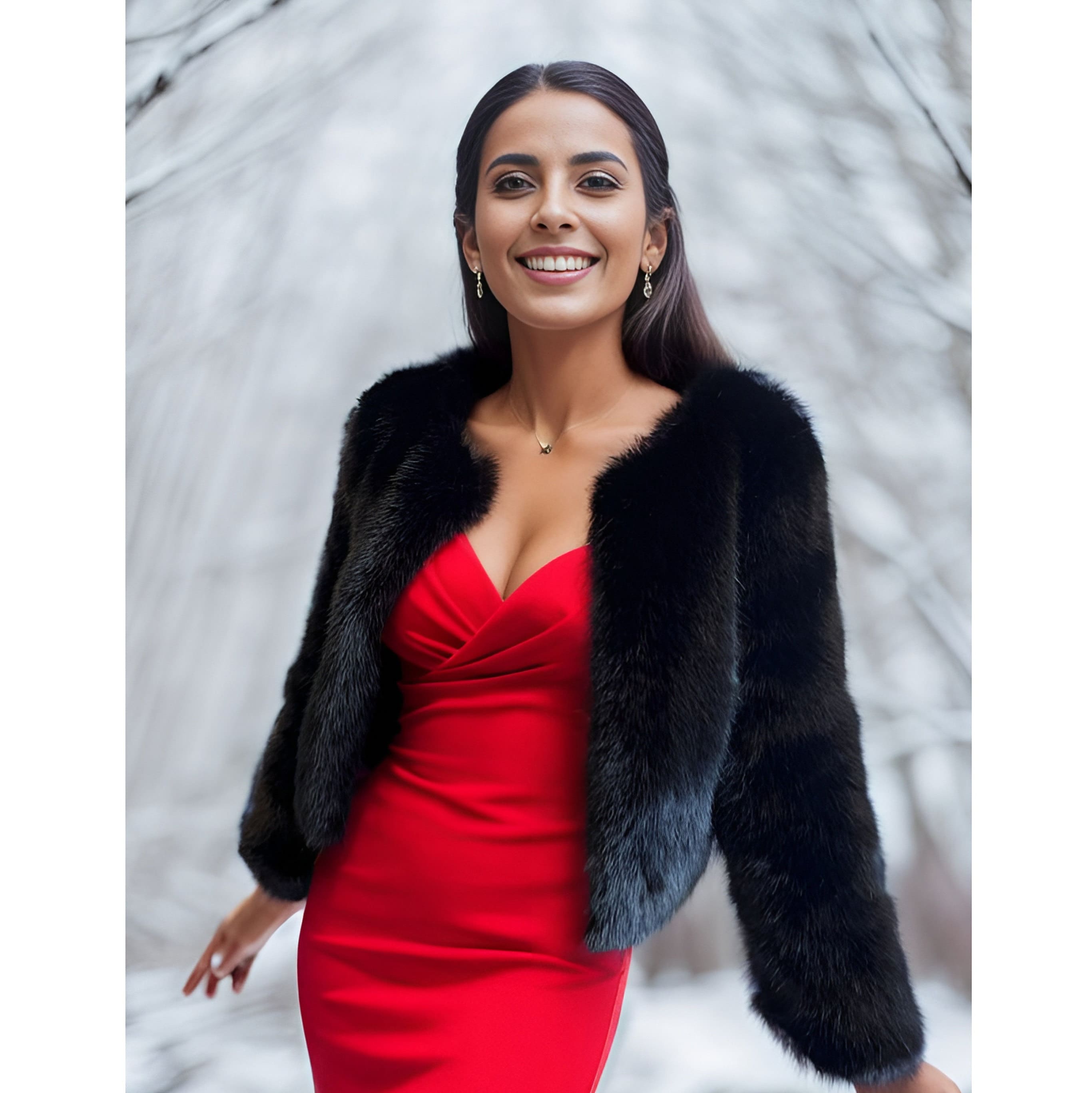 Black Faux Fur Coat, Black Fur Jacket, Bridal Fur Coat, Faux Fur Bo...