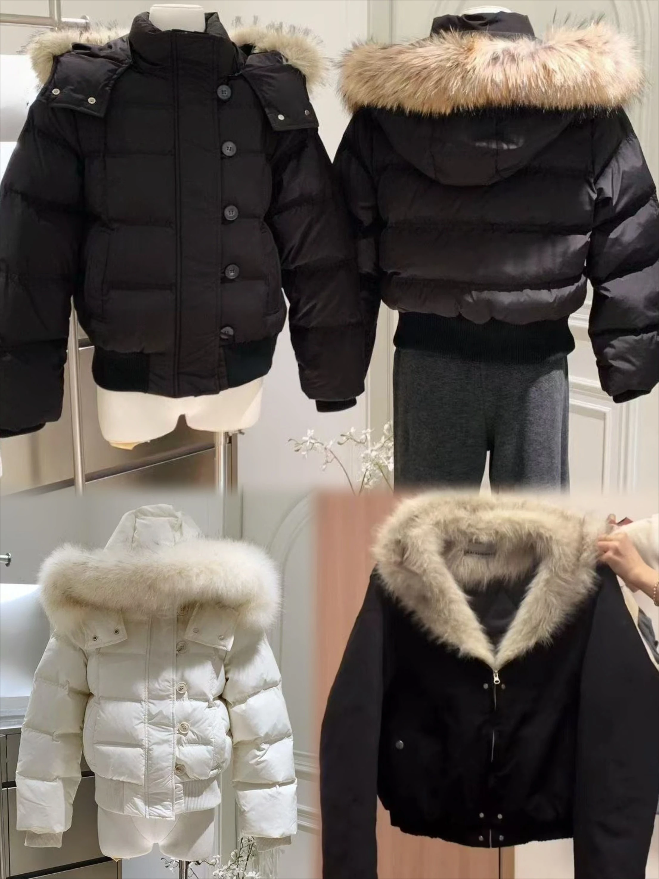Natural Fox Fur Collar Goose Down Coat Luxury Reality Fur Jacket Hu...