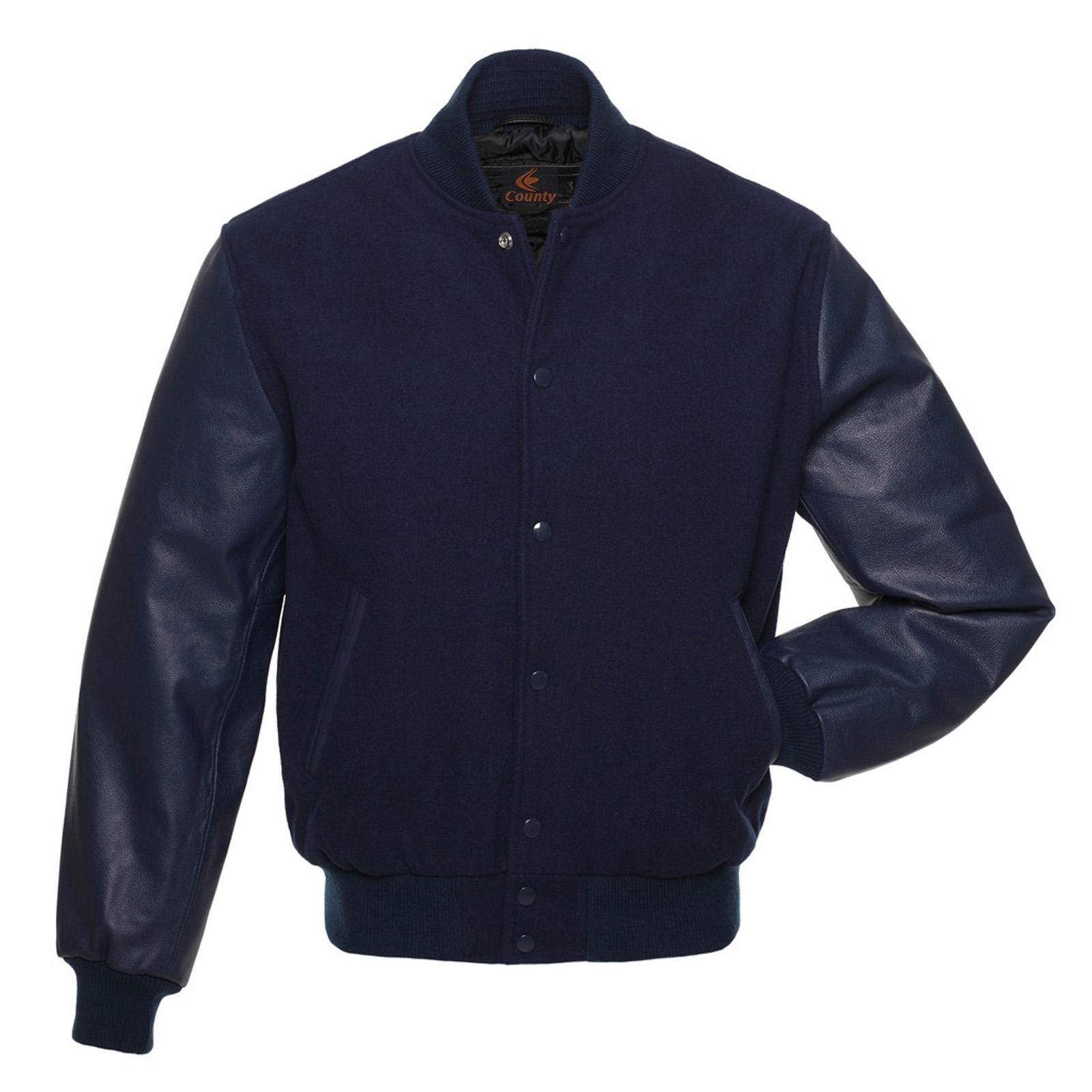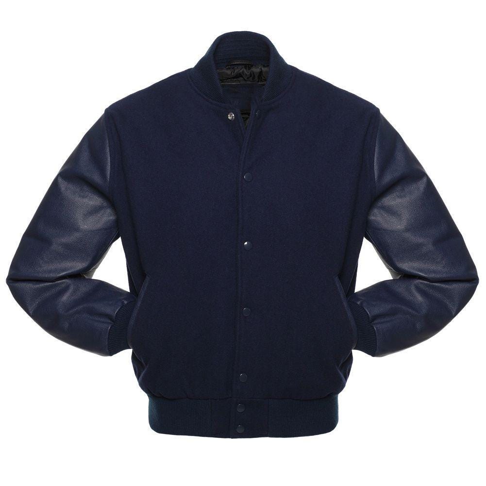 Varsity Jacket Navy Blue Wool Body & Navy Blue Leather Sleeves ...