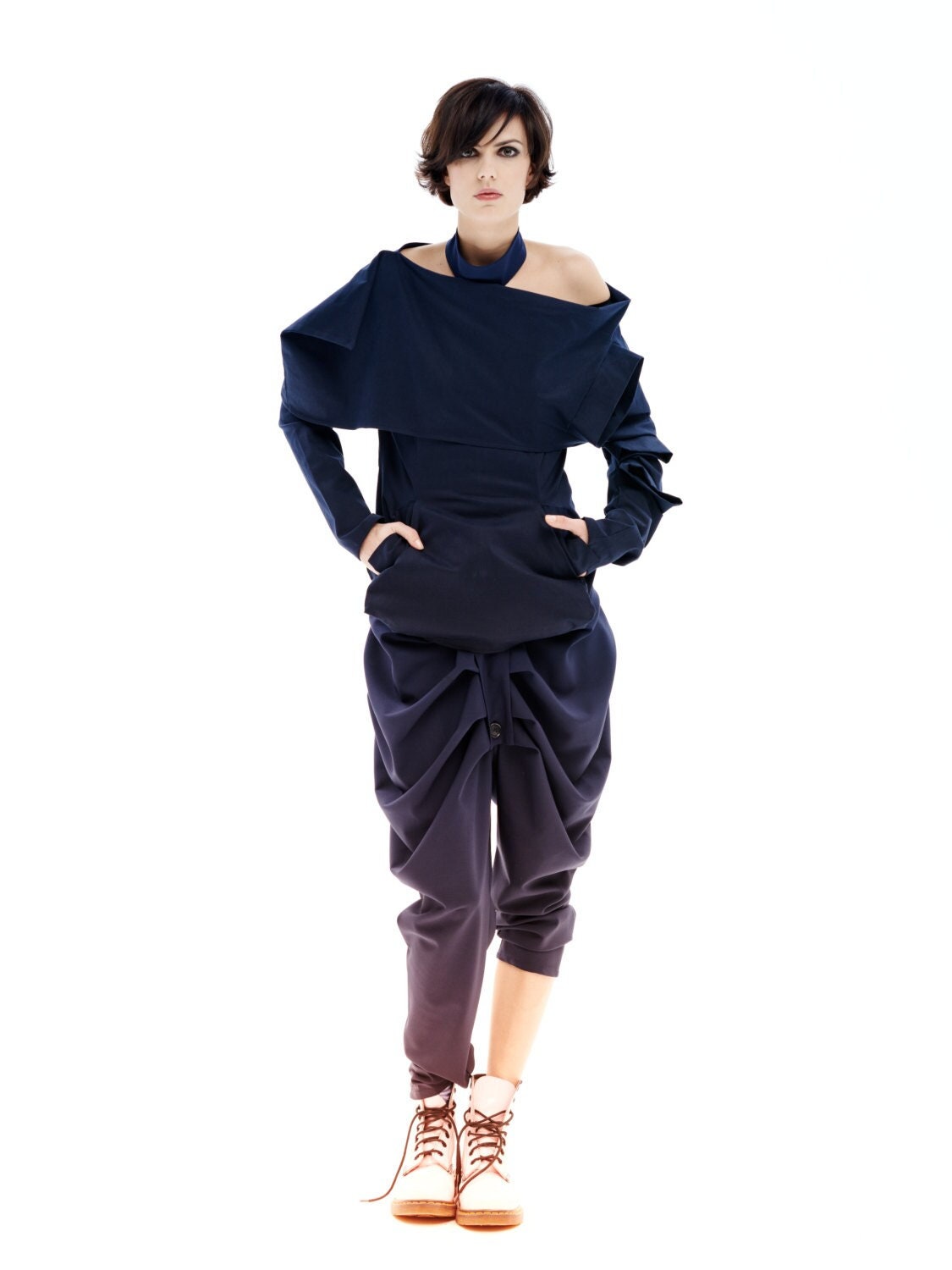 Extravagant Jacket In Navy Blue, Off Shoulder Top, Avant Garde Clot...