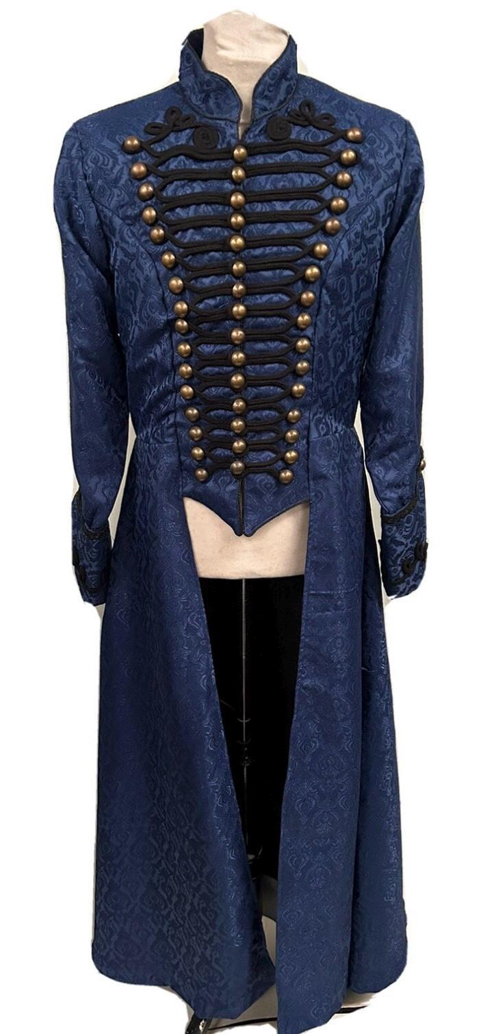 "This is a vintage Raven jacket. It is a blue brocade with vintage design military / pirate lon...