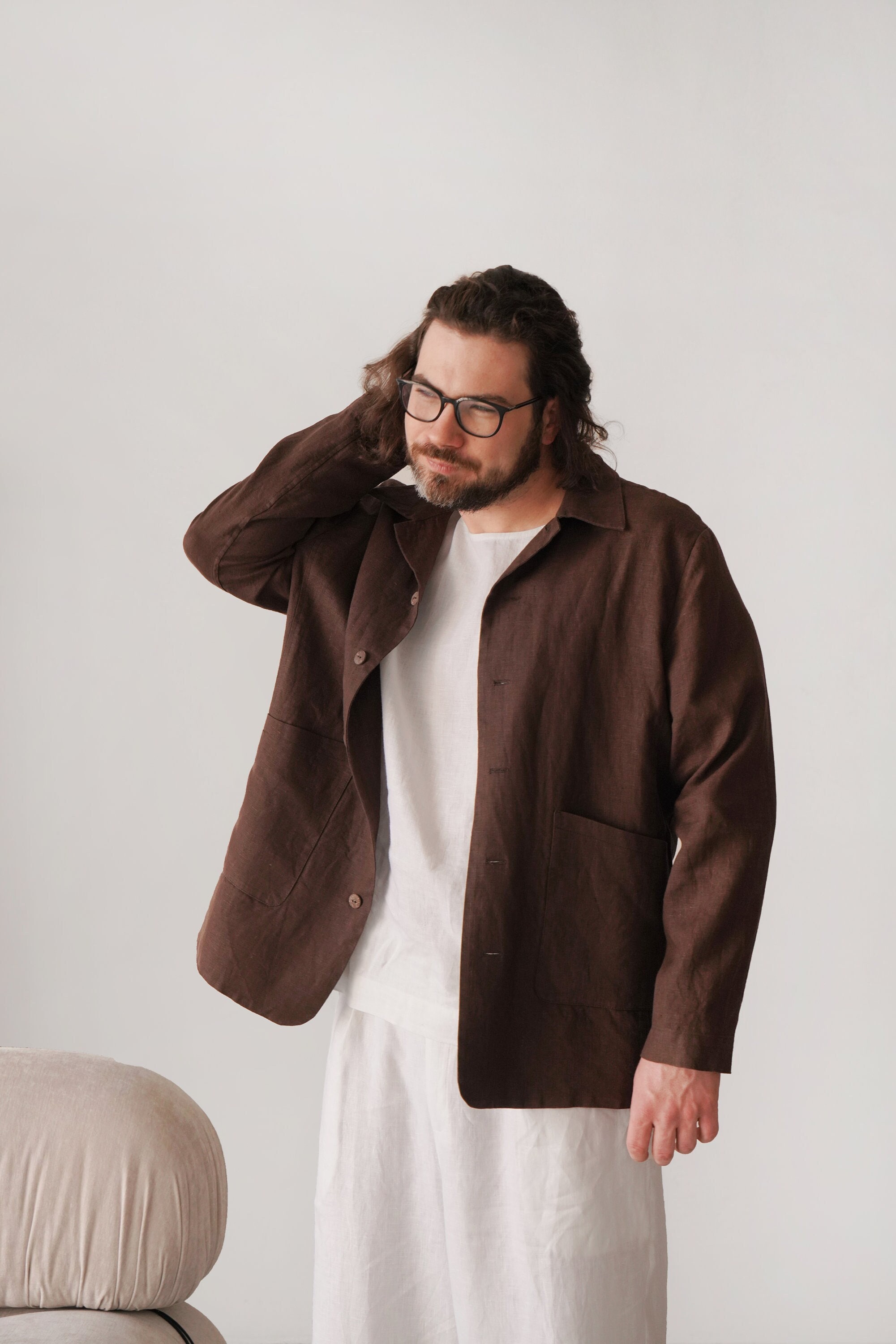 "Men's linen bomber jacket with patch pockets. Color in the picture - Brown. This jacket is mad...
