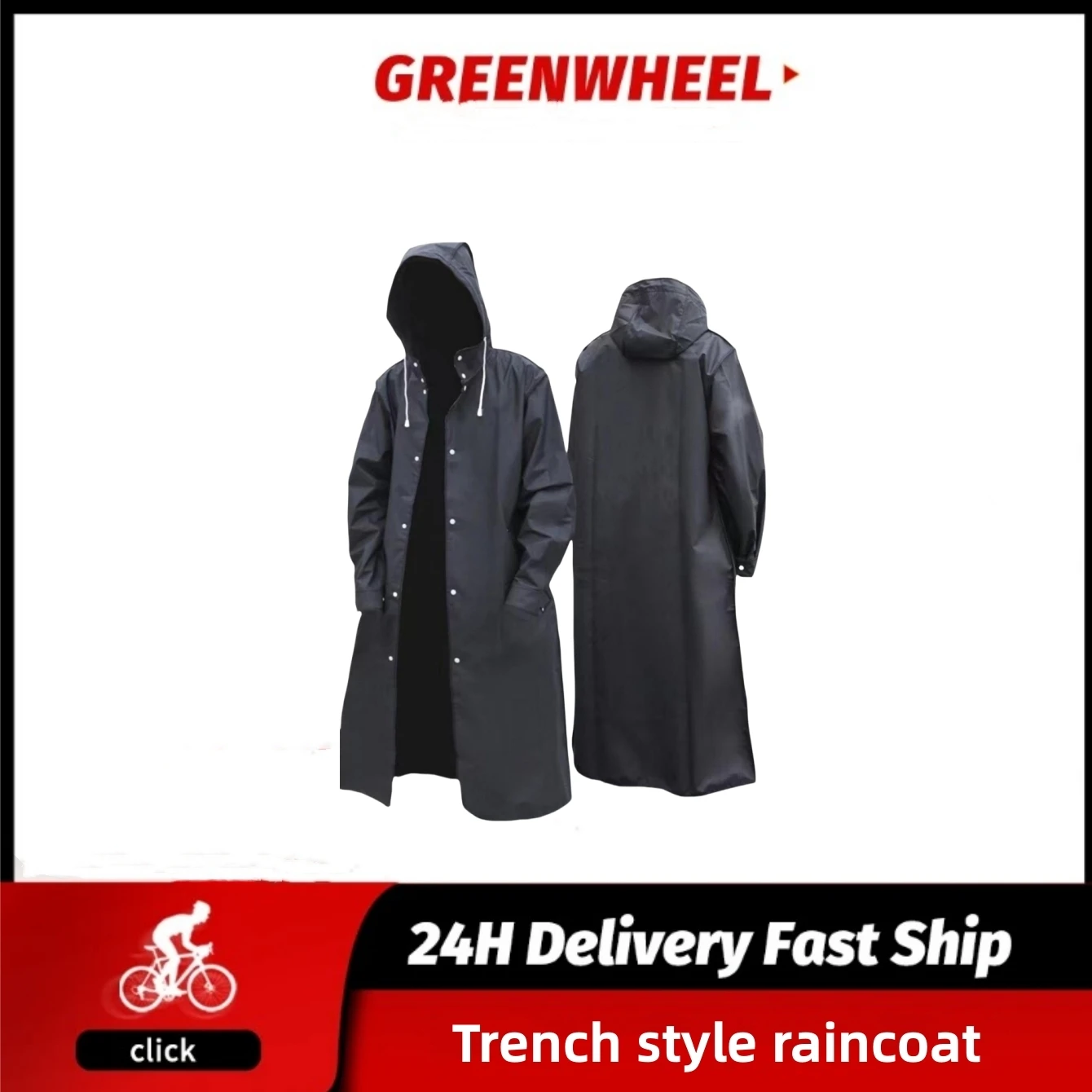 Black men's and women's hooded raincoat, adult trench coat style raincoat, outdoor thickened poncho,...