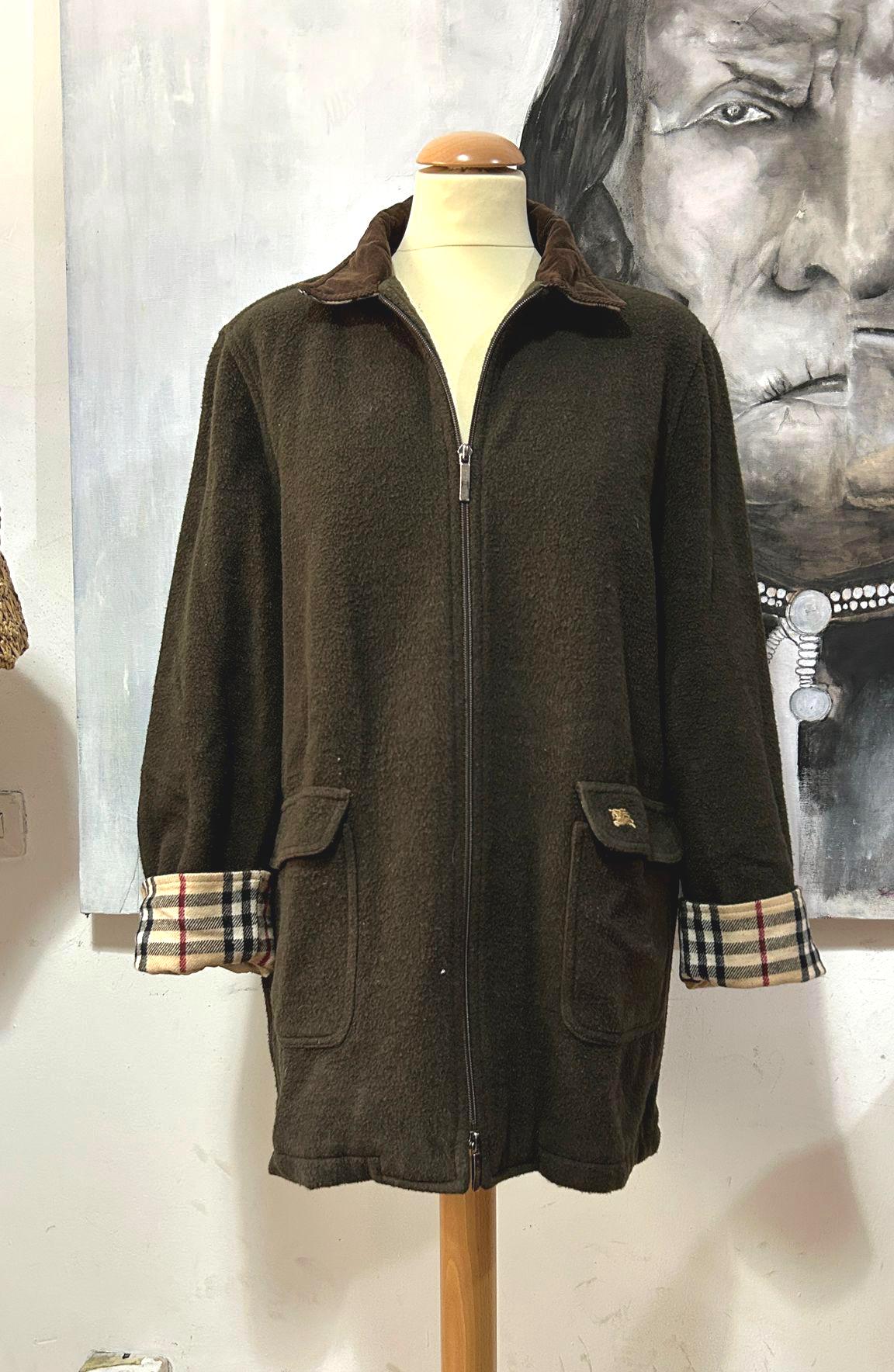 Vintage Burberry jacket from the 2000s for women in brown wool with a brown corduroy collar and edge...
