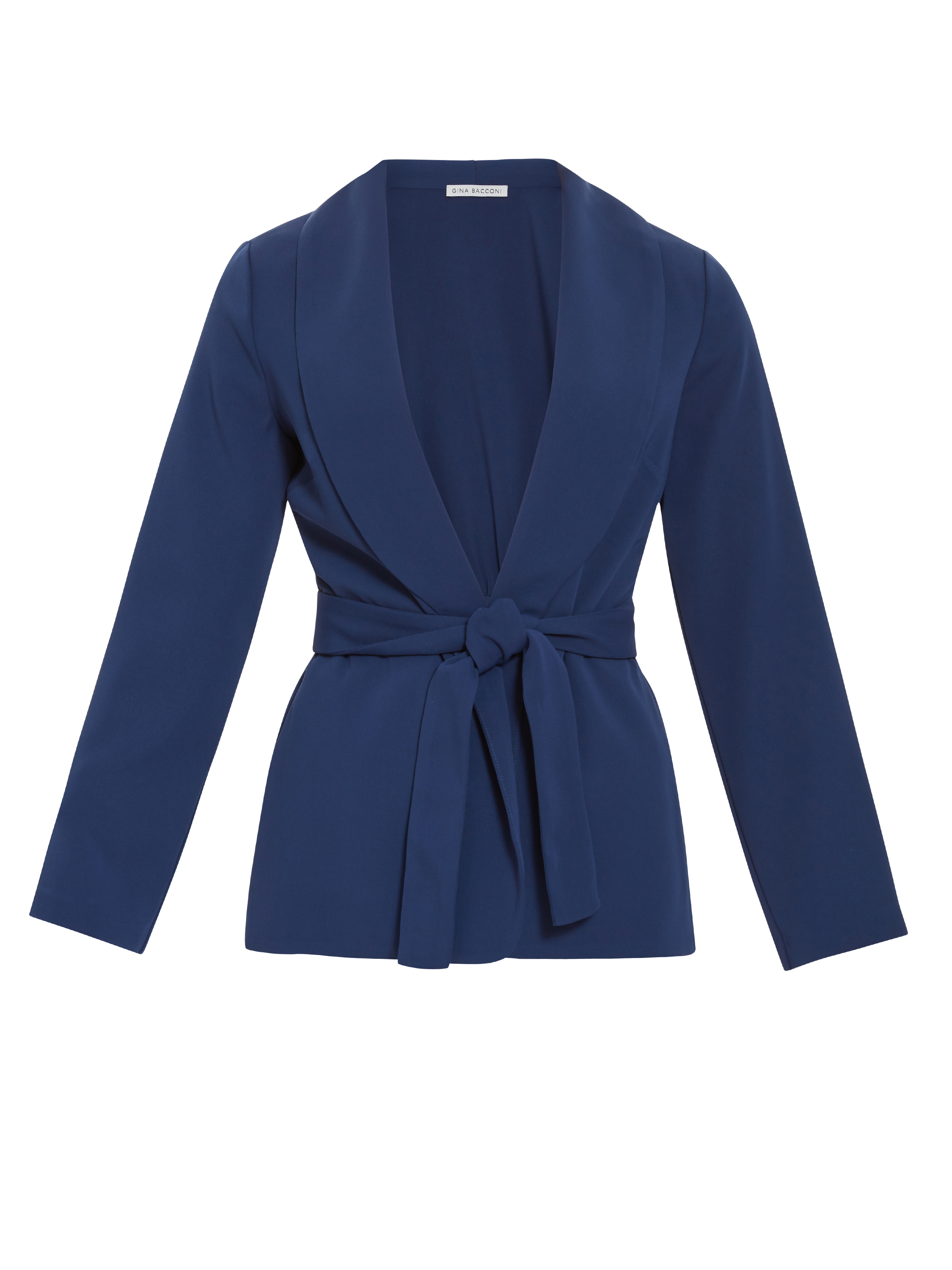 Gina Bacconi Womens Linete Moss Crepe Tie Jacket - Navy - Size 12 U...