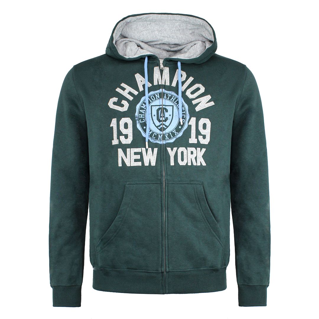 The Champion Easy Fit Long Sleeve Zip Up Dark Green Men's Hooded Track Jacket is a stylish and comfo...