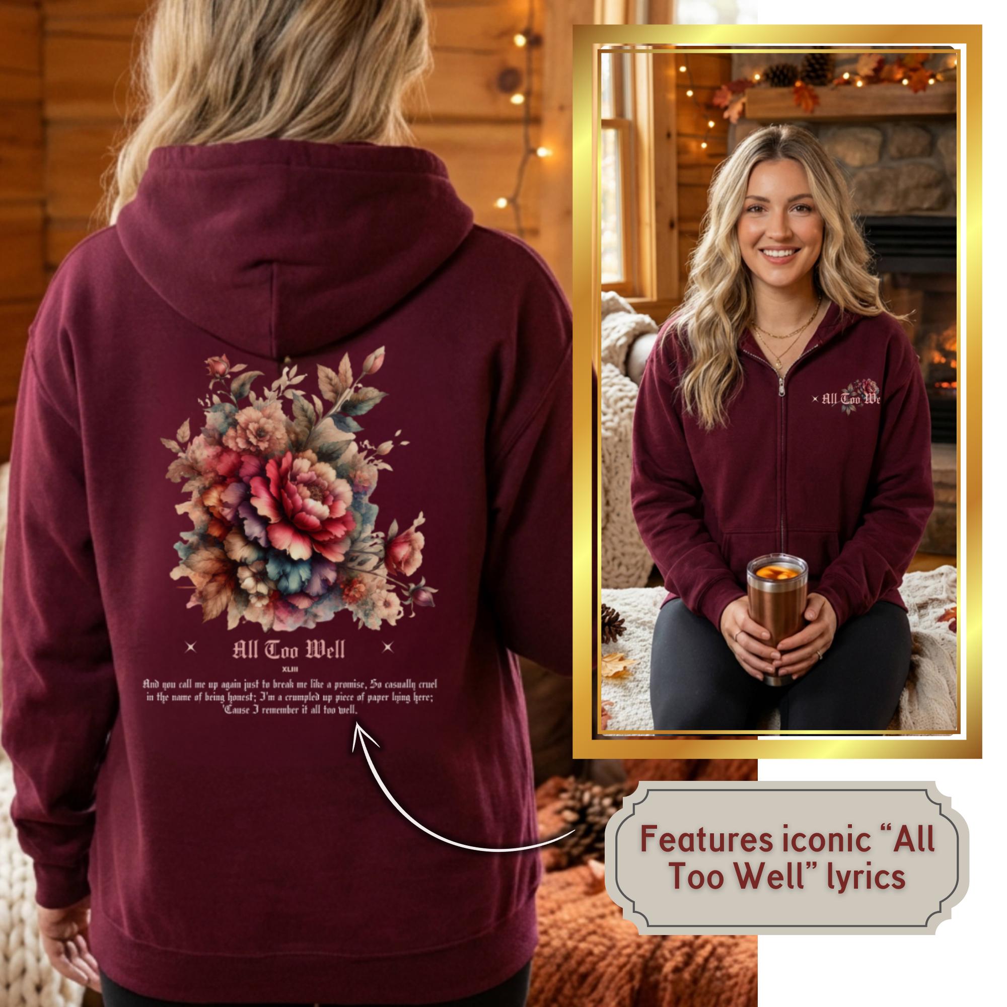 All Too Well Taylor Zip Up Hoodie Vintage Fall Floral Aesthetic Swi...
