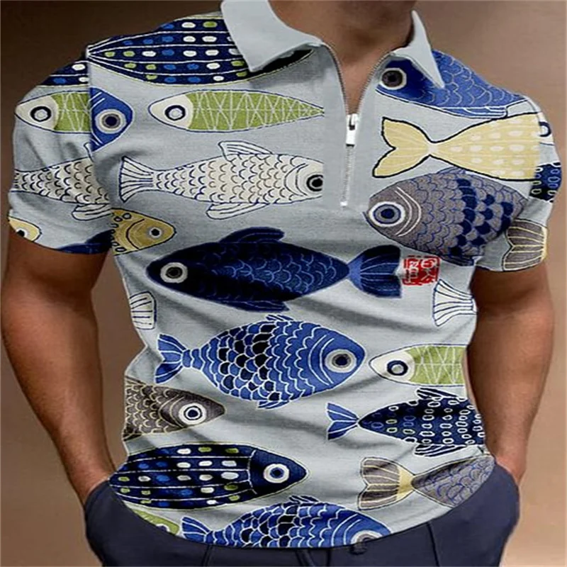 2025Men's Retro Japanese Art Octopus Red Wine Print Casual Polo Shirt Men's Black Cat Cherry Blossom...