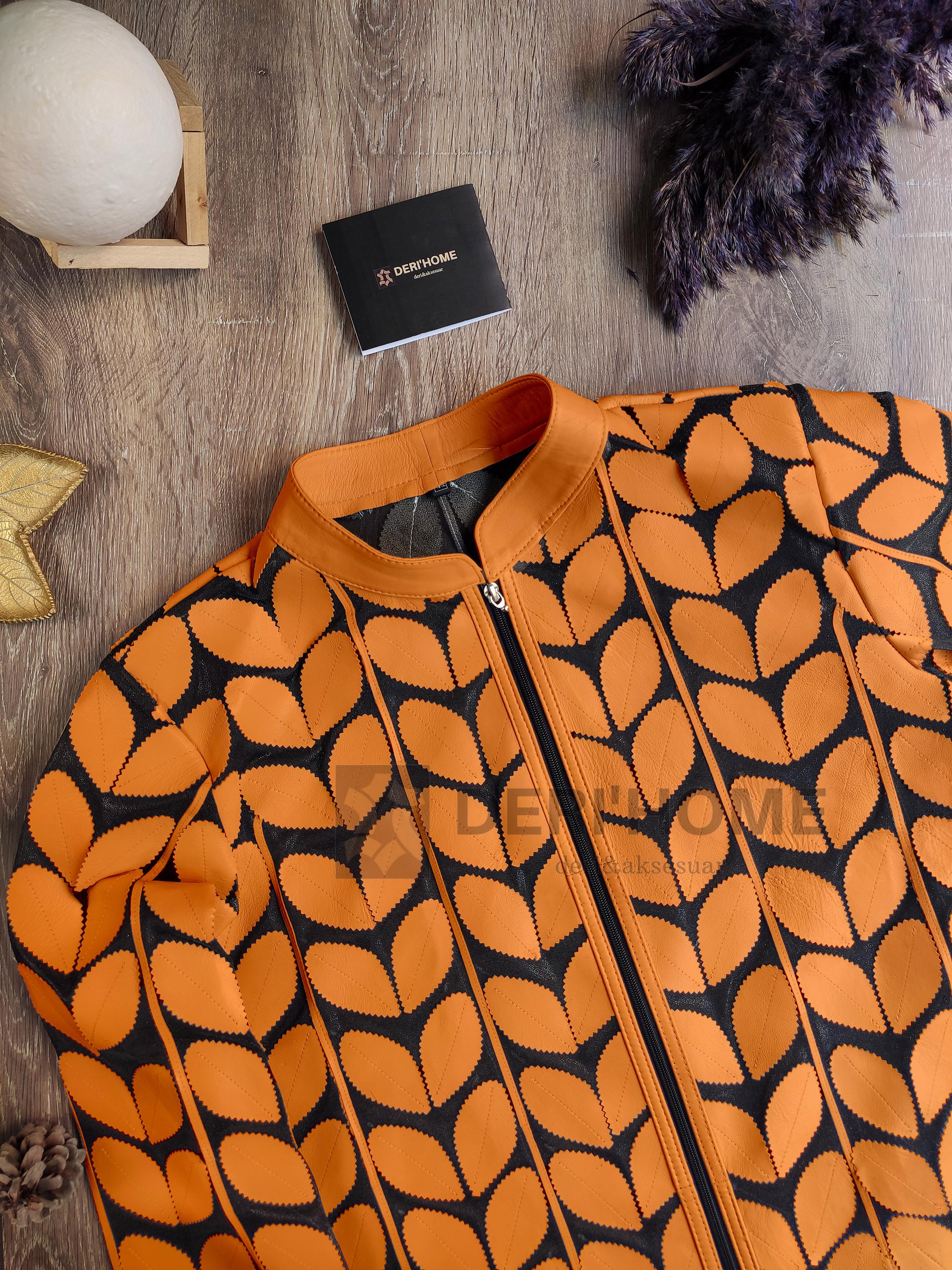 Orange Leather Leaf Jacket Women, Leaf Shirt, Beach Jacket, Party J...