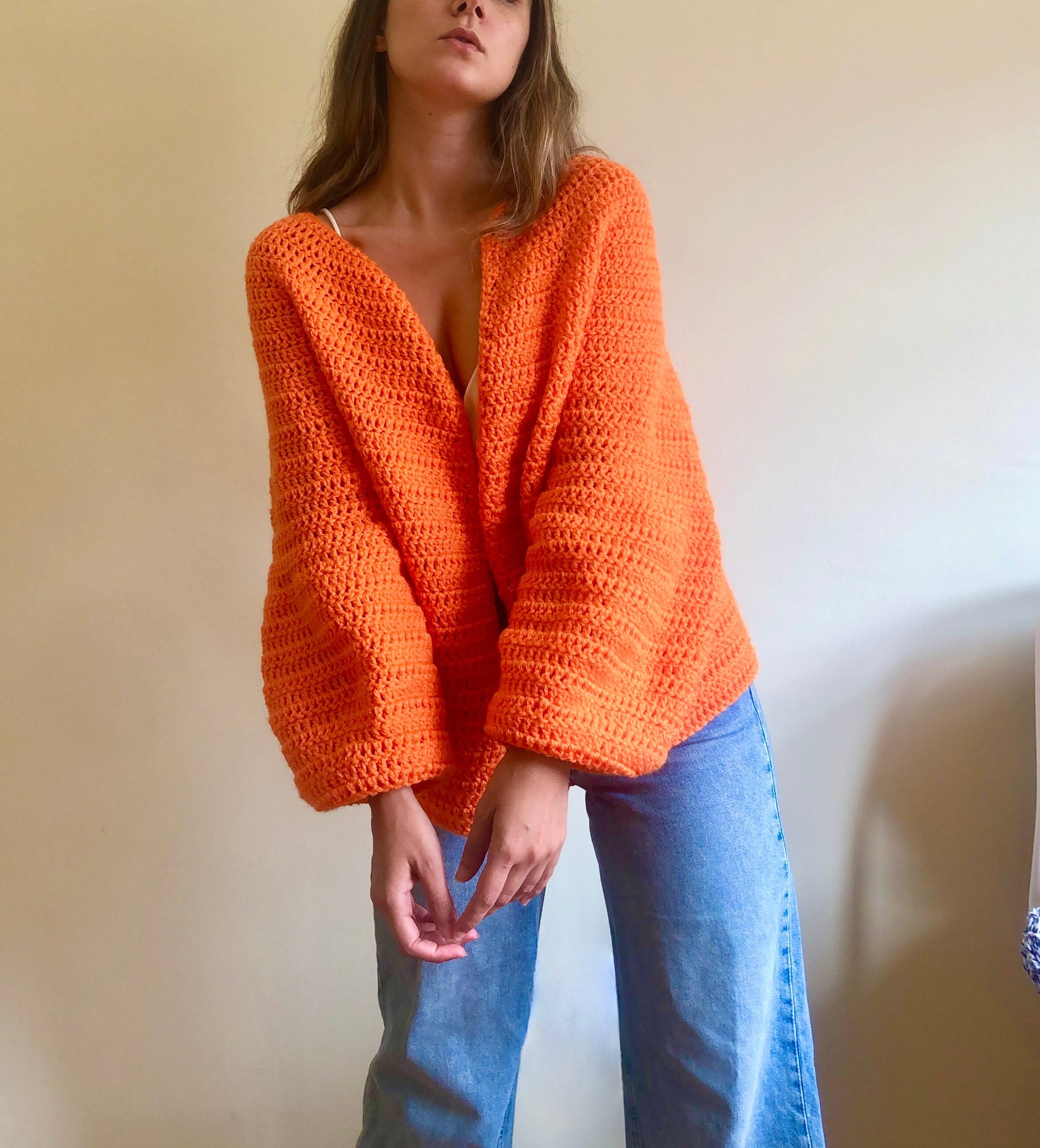 Orange solid cardigan for women. This orange sweater, has a gorgeous open front and is 100% handmade...
