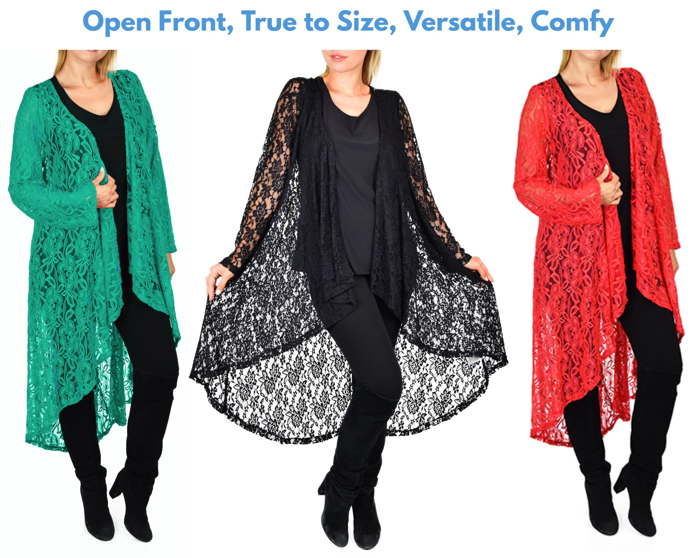Women Plus Size High Low Open Front Duster Jacket Cardigan, Hand MA...