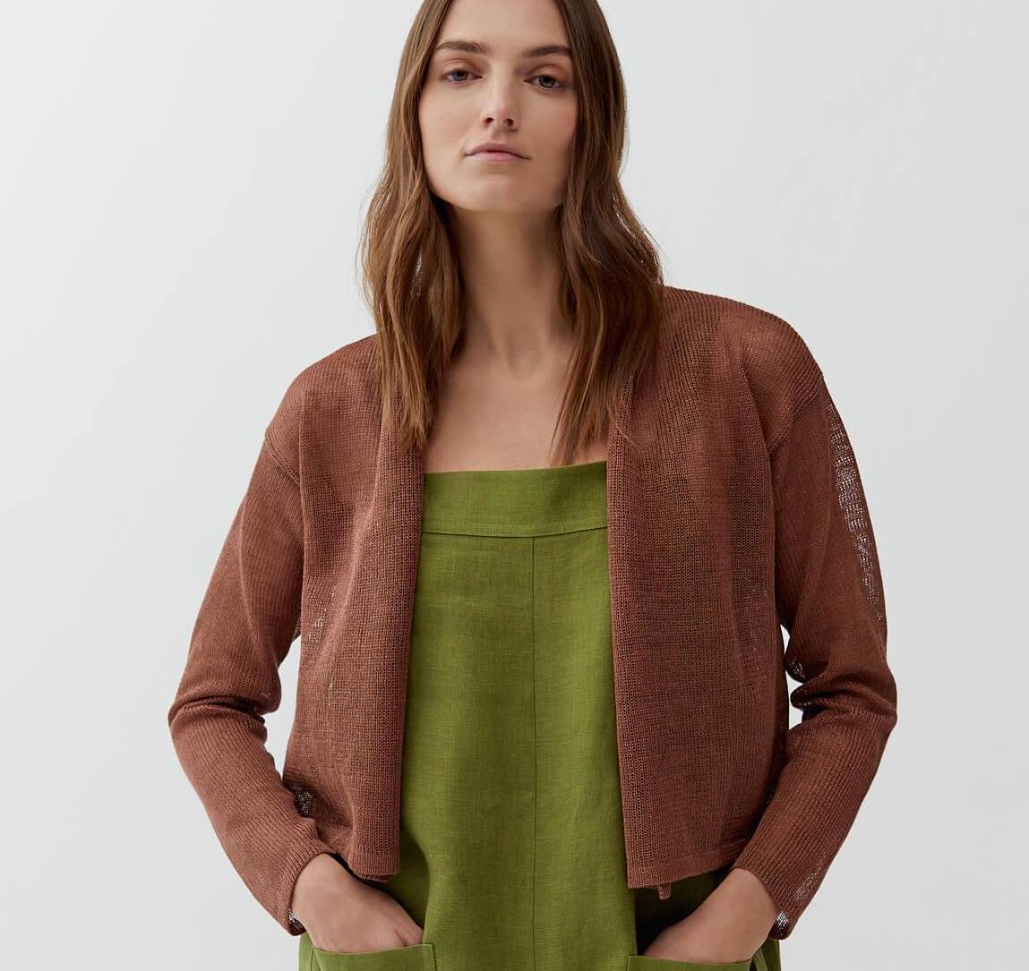 Hand knitted from pure linen yarns minimalist style cardigan for woman is extremely lightweight and ...