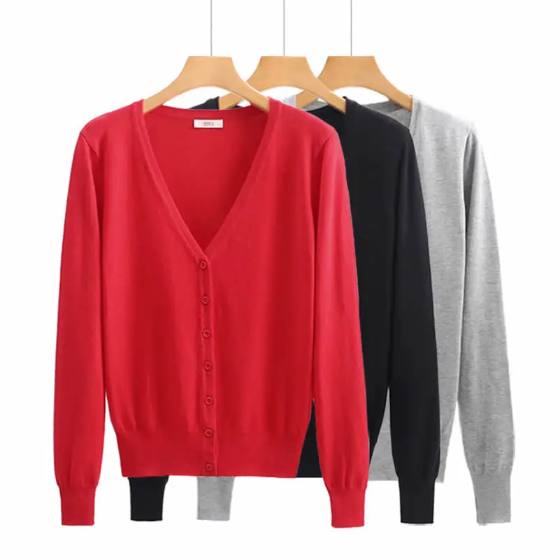 6XL Plus Size Women Knitted Cardigan Coat Solid Color Red Winter Casual V-Neck Long Sleeve Crochet K...
