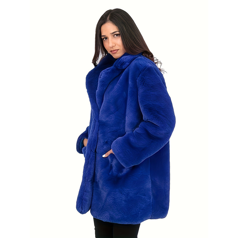 Women's Faux Fur Coat Warm Comfortable Pocket Knitting Elegant Fash...
