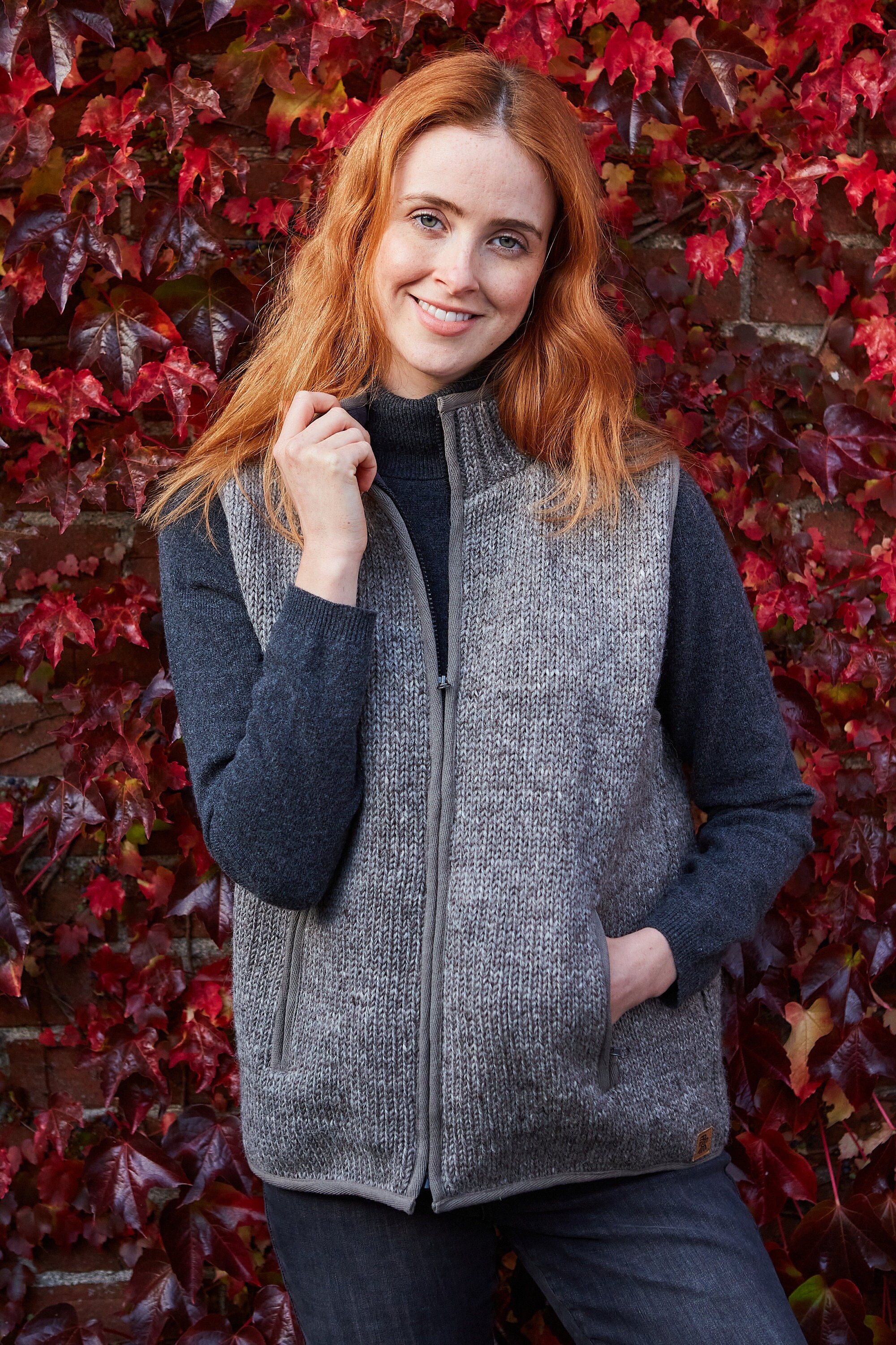 Women's Hand Knit Body Warmer, 100% Wool Fleece Lined Gilet, Grey S...