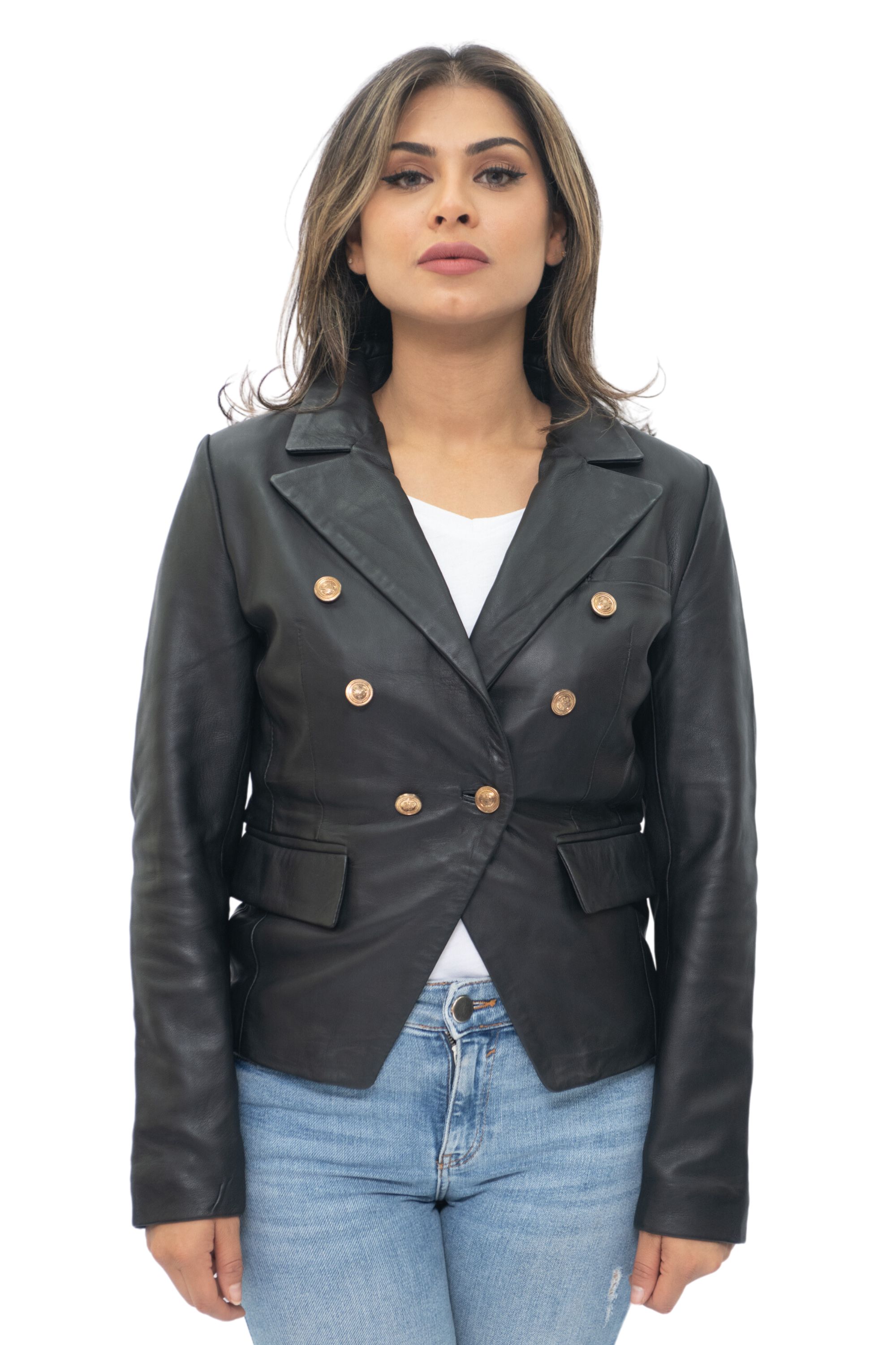 Make a bold statement with our Women's Leather Military Blazer Jacket. Crafted from soft and supple ...