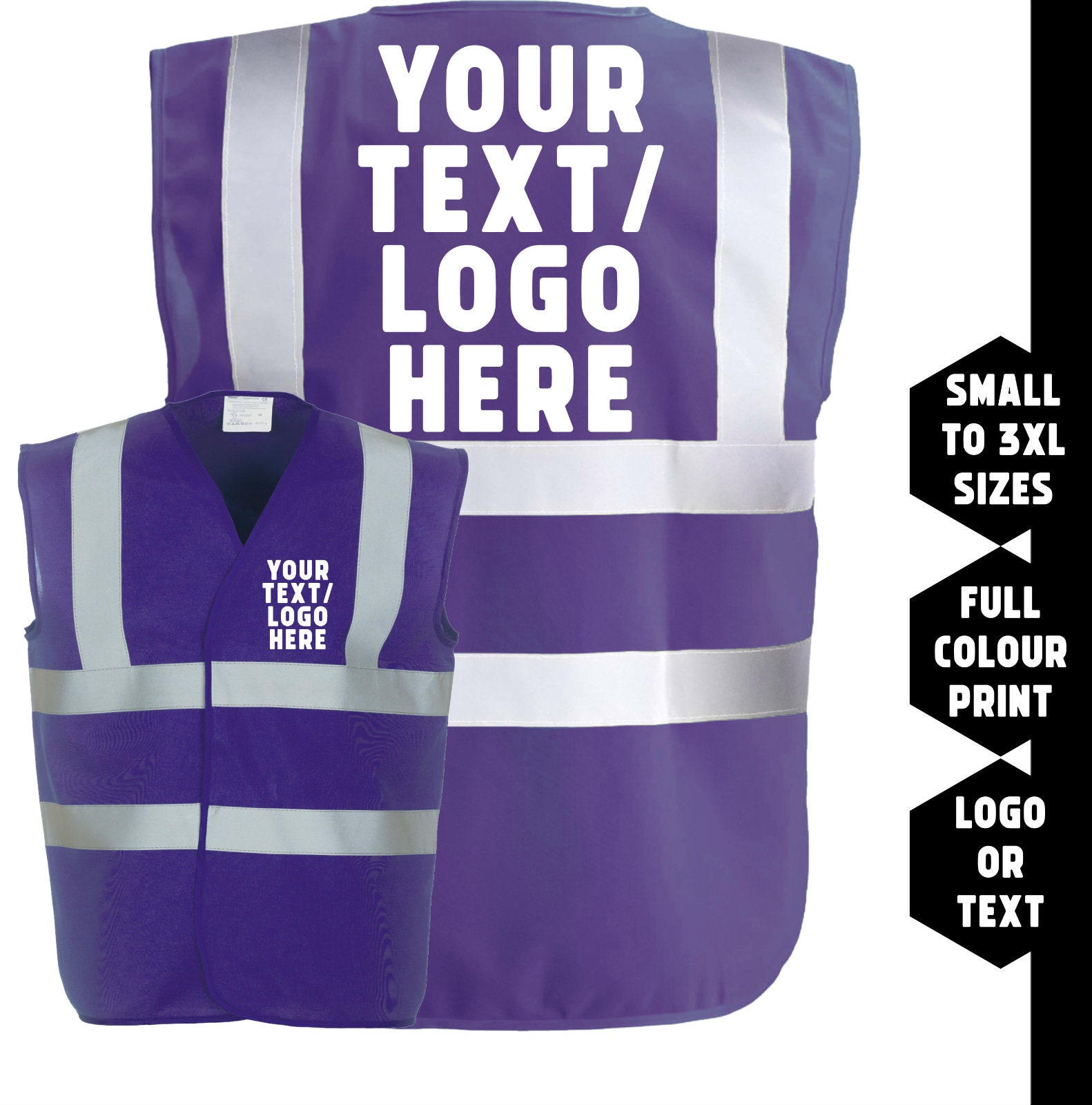 Custom printed purple hi-vis high-vis visibility safety vest/waistc...