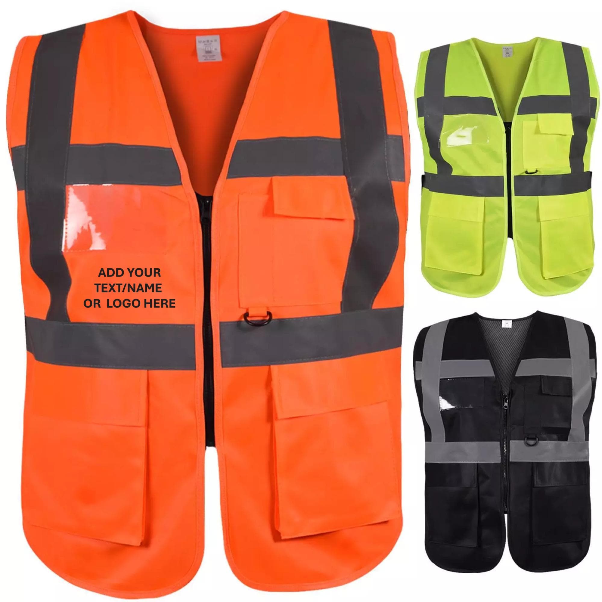 PERSONALIZED Hi-Vis Executive Vests CUSTOMISED HIGH VISIBILITY VESTS/JACKETS ADD YOUR TEXT/NAME OR L...
