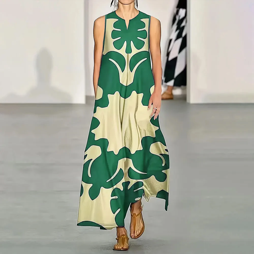 Summer Retro Plant Flowers Print Dress Women Round Neck Sleeveless ...