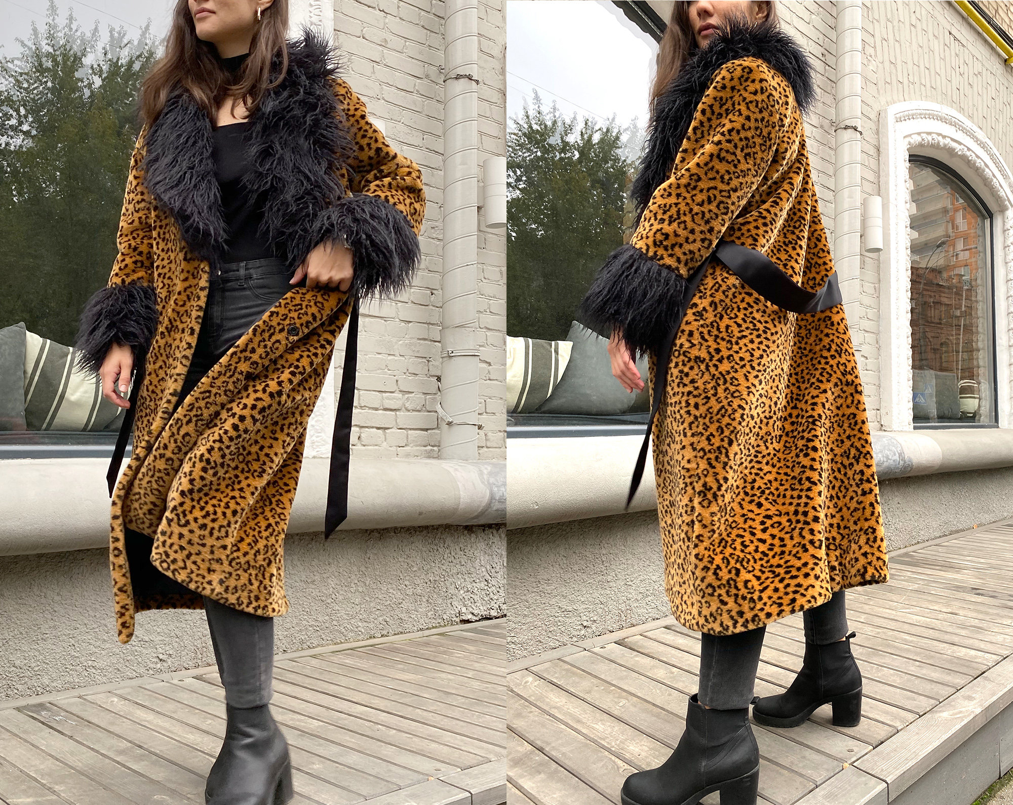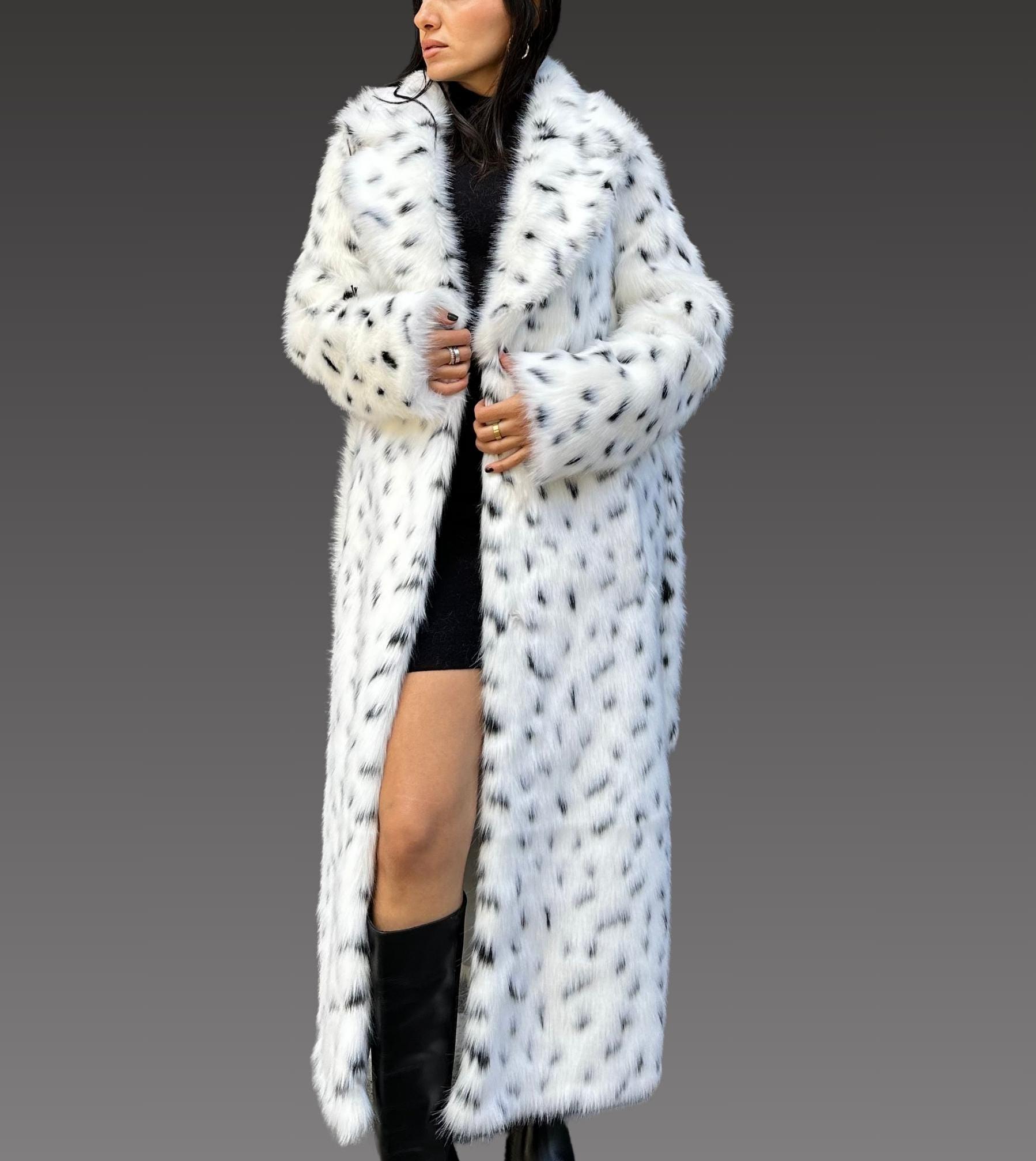 Leopard Print Faux Fur Coat for Women, Animal print Full length fak...