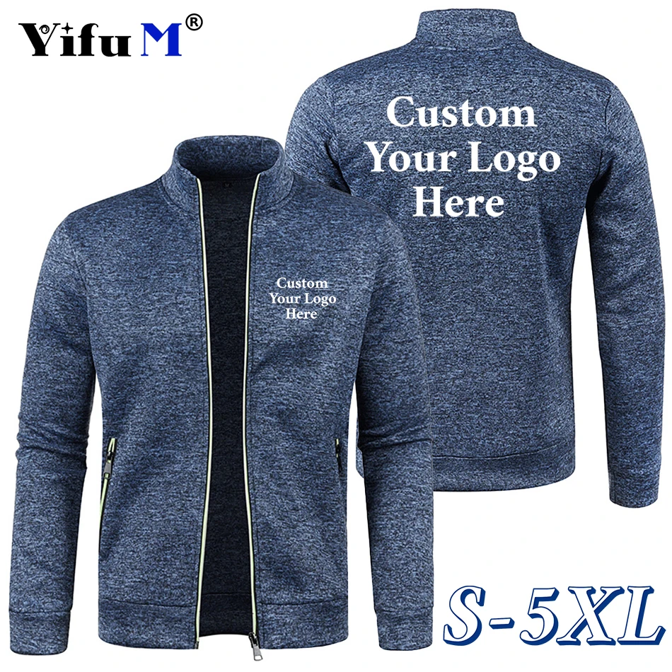 Custom Your Logo Men Zipper Jackets Standing Collar Sweatshirt Outdoor Streetwear Casual Coat Long S...
